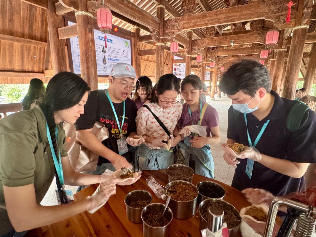交流團首站抵達光澤縣,青年們入住當地黨校,體驗規律有序的集體生活,感受樸實嚴謹的學習氛圍。次日,眾人走進崇仁古街,深入學習中醫藥文化,了解光澤非遺“建昌幫中藥炮製”技藝;漫步古街,領略古建築風貌與人文底蘊。隨後前往寨裡,參觀以非遺竹藝技藝打造的玲瓏橋,領略傳統手工藝的精妙,並品嚐融合非遺手藝的當地特色鄉土美食。走進大自然,壯觀的白水際瀑布如飛龍躍穀;在管蜜千畝梨園旁,一品當地綠茶之香,感受鄉村振興帶來的蓬勃生機。