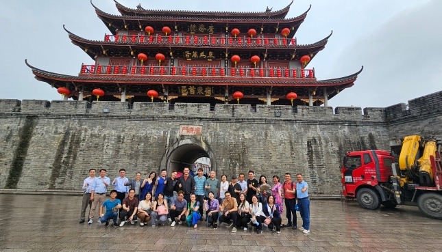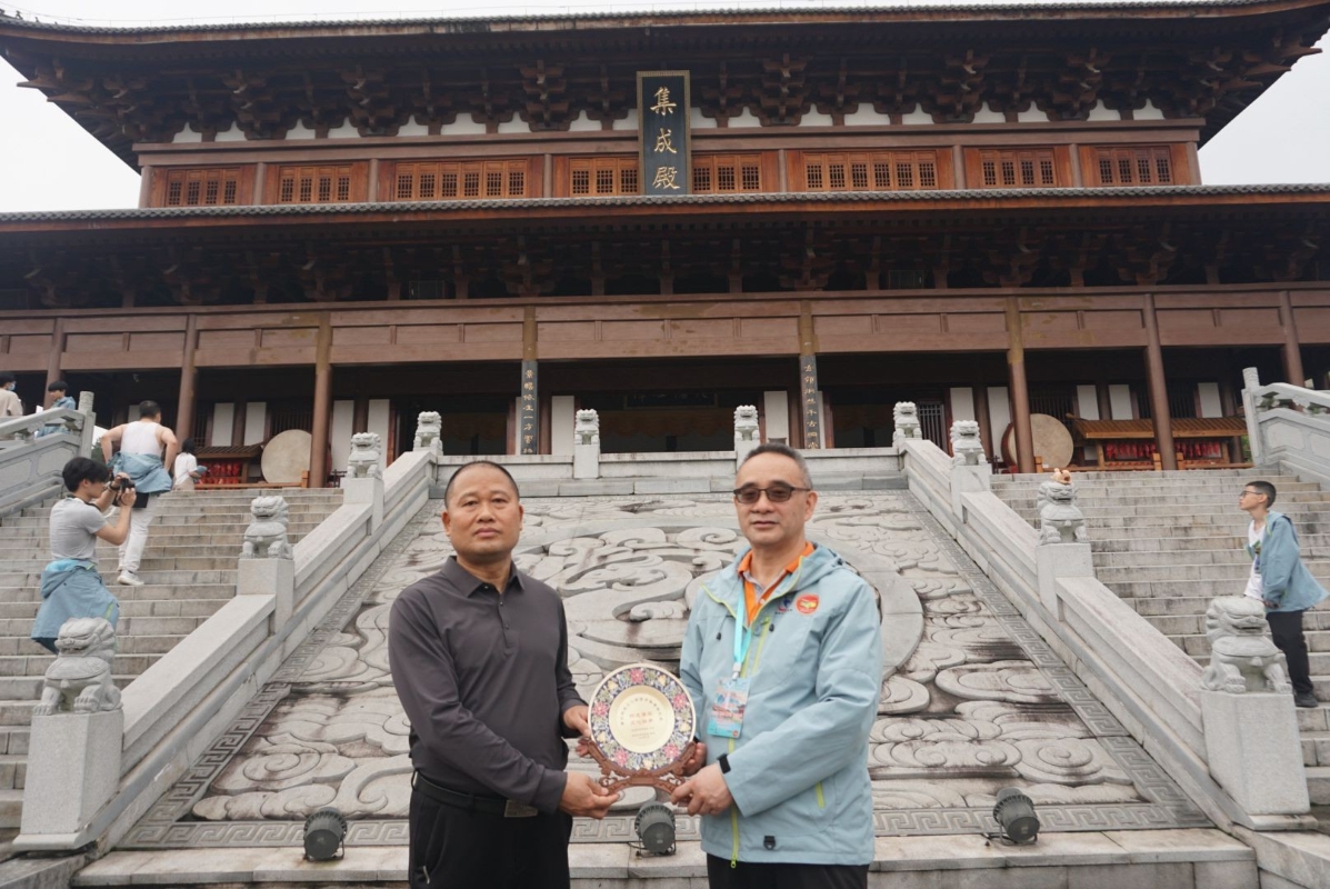 香港光澤聯誼會會長嚴義松(右)与建陽區委統戰部鄭強常務副部長。 接下來的行程中,交流團走進聖農博物館,近距離了解亞洲產量第一、供應國內各大市場的龍頭企業發展歷程,見證祖國農牧產業的強大實力;參觀光澤博物館,梳理地方歷史文脈,汲取歷史文化智慧;走進紅茶博物館,學習茶藝文化、品嚐不同品種的紅茶,親身體驗非遺茶文化的獨特魅力;走訪油溪村、饒坪村,深入了解鄉村生活與發展面貌;體驗非遺技藝“擂茶”製作,眾人通力合作,反覆捶打茶葉、陳皮等原料,共同完成擂茶沖泡,在協作互動中發揚團結精神,感受傳統技藝的樂趣。 交流團還前往邵武市,參觀全國最大的竹立方館。館內陳列眾多以本地竹材為原料、融合多元設計與先進技藝打造的傢具、裝飾品及藝術品,令大家嘆為觀止。走進和平古鎮與明清古街,領略閩北古鎮建築特色與傳統生活文化,感悟歷史沉澱的人文魅力。