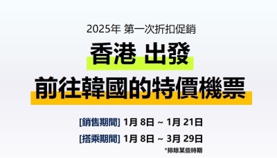 凡年滿60歲或以上的香港及澳門居民,均可於推廣期間透過指定優惠訂購專頁,以優惠票價購買來往以下12個精選航點的機票:廣島、名古屋、首爾(仁川)、濟州 、台北 、高雄 、富國島、河內 、檳城、吉隆坡(梳邦)、寧波以及無錫。購票鏈接:https://www.hkexpress.com/zh-HK/campaign/seniorcitizens_flashsale_20260417 “60+老友記限定兩折優惠”推廣期由2026年4月17日上午10:00起至4月20日晚上11:45止。合資格旅客只需於推廣期內透過香港快運指定優惠訂購專頁預訂航班,並於2026年4月27日至2026年10月24日期間出發,即可享此特別優惠。優惠不設訂購次數上限!不過名額有限,先到先得!(完) 【編輯:徐嘉儀】