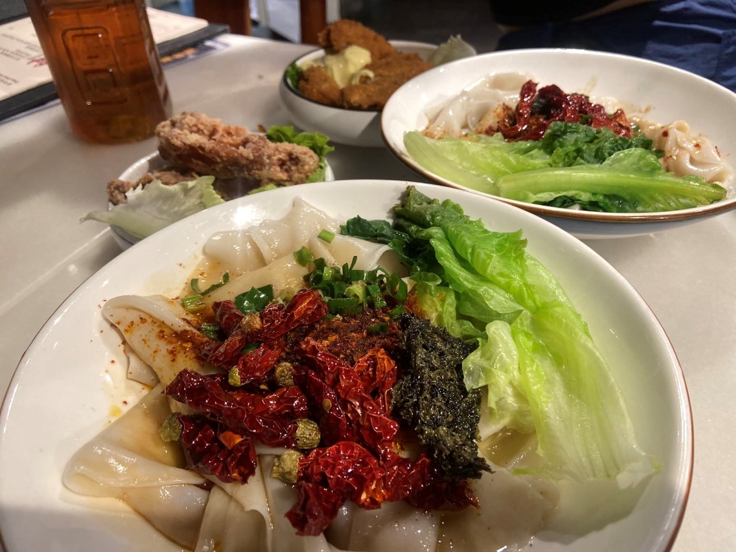 香港新聞網10月6日電 香港銅鑼灣的小巷內時常藏著一些不為人知卻質素很高的小店,例如在銅鑼灣渣甸坊就藏著一間跟著導航都不好找的陝西風味餐廳“嘹咋咧”(陝西方言“嘹咋咧”,好極了的意思)。 “麵香不怕巷子深”,該店午飯時間排隊半小時起…… 進入店裡,你可以看到食客們幾乎人手一個肉夾饃,每桌上至少擺著一碗油潑扯面。在翻開菜單之前,已經透露何謂“鎮店之寶”了。流油的肉夾饃裝在和陝西許多小店同款的小籃子里,令人倍感親切。酥脆到咬一口就不停掉渣的餅皮,也契合了如今內地追求脆皮款肉夾饃的“風潮”,足量的內餡肥少瘦多、肉香四溢,不得不給它滿分。