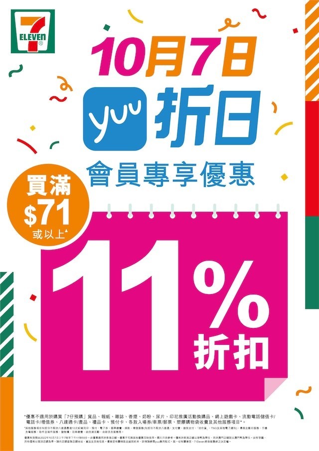 香港新聞網10月7日電 7-11便利店再推出1日快閃限定優惠日!