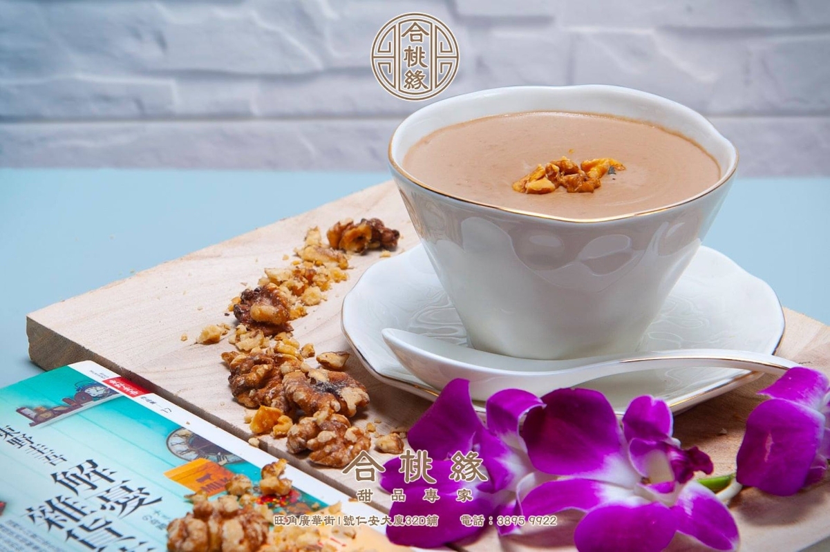 (圖源:Nun Desserts Cafe) 地址:旺角通菜街119號地舖 電話:5791 2141 營業時間:(星期一至五)14:00-00:00(星期六及日)13:00-00:00 合桃緣 —— 美顏養生合桃糊、杏仁露 合桃緣是一間主打傳統中式糖水甜品的小店,招牌款式包括合桃糊、杏仁露、芝麻糊、燉原個雪梨、雪耳桃樹膠等。糖水用天然食材製成,並具備一定美顏養生功效,適合女士食用。西式甜點如法式焦糖燉蛋、香蕉船等,價格亦較優惠,30港幣起。