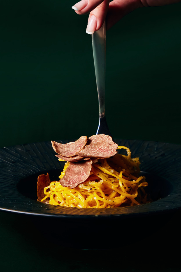 阿爾巴白松露意大利幼麵 Vista由意大利行政總廚Andrea Mura掌舵,設計一系列精緻的意大利美食,由開胃前菜、香脆薄餅、傳統威尼斯bàcari酒館小食(又名cicchetti)到手工意大利麵及豐盛的燒海鮮拼盤。招牌菜包括Andrea Mura以意式忌廉甜麵包Maritozzi為靈感,變奏而成的手撕烤豬肉意大利包、番紅花意式香腸意大利飯及皮埃蒙特的傳統菜餚阿爾巴白松露意大利幼麵,以自家製薄身麵條搭配該區名產白松露。