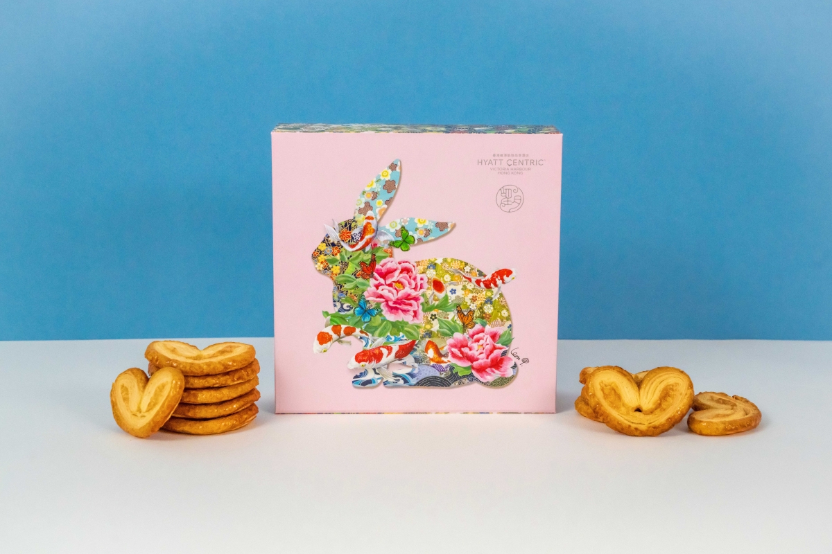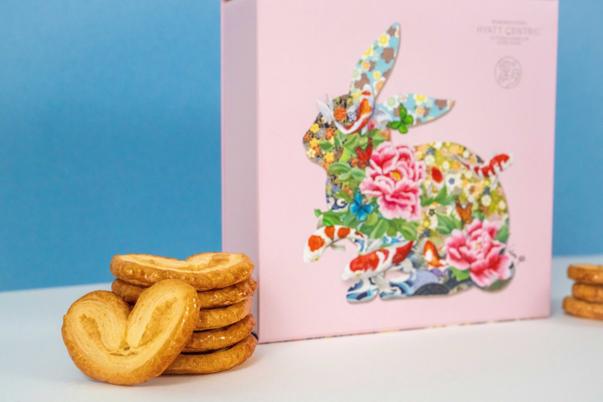 香港新聞網12月8日電 為慶祝兔年,香港維港凱悅尚萃酒店與望月合作推出“兔年有餘”蝴蝶酥賀年禮盒(24件裝)。包裝設計由香港藝術家Leon Lollipop(黎里昂)操刀,以其“馬賽克系列”為藍本,在傳統國畫畫布上使用牡丹、蝴蝶和錦鯉等充滿活力的圖案,藉此帶出期盼新年萬象更新的好寓意。這款期間限定的賀年禮盒定價HK$230,早鳥優惠HK$198可由即日起至2023年2月3日期間在香港維港凱悅尚萃酒店網上商店(點此購買),或酒店2樓的The Farmhouse Deli餅店購買,售完即止。