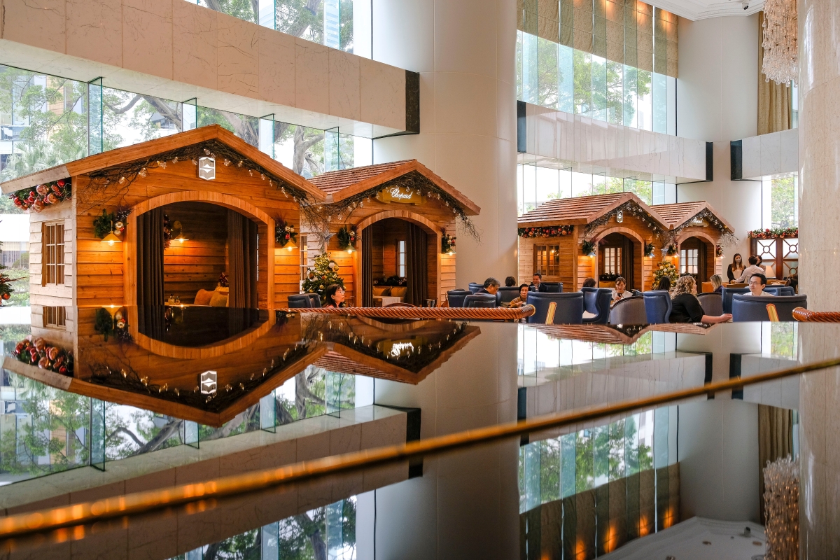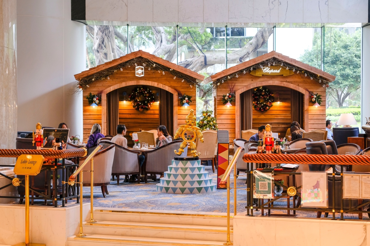 香港新聞網12月9日電 今個聖誕,港島香格里拉大酒店(Island Shangri-La, Hong Kong)與瑞士鐘錶珠寶品牌蕭邦(Chopard)合作,把酒店大堂酒廊打造成冬日度假小鎮。賓客可安坐在聖誕小屋內享用Chopard主題節日下午茶,仿如置身和暖洋溢的歐洲雪山小屋之中。