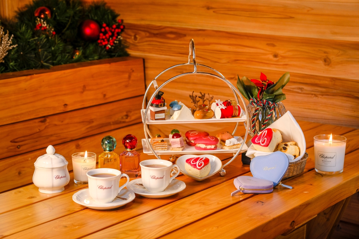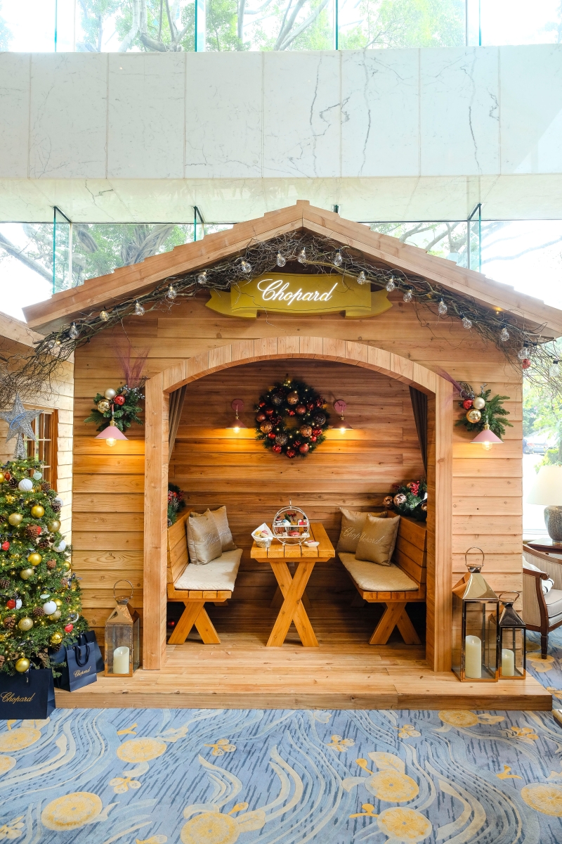 甫進入酒店大堂即能被4間窩心的瑞士小屋所吸引,旁邊放置飾有蕭邦裝飾品的迷你聖誕樹,小屋內的聖誕花環及佈置給人猶如燭光般的溫暖感覺,木枱上擺放了飾以品牌標誌的蠟燭、座墊及陶瓷器皿,並以心形小碟擺放英式鬆餅,心形一直是蕭邦品牌鍾愛的圖案,今次港島香格里拉大酒店行政總厨Uwe Opocensky以不同的形態將其呈現於下午茶之中。客人可於充滿節日氣氛的瑞士小屋中享用主題下午茶和其他美味佳餚。