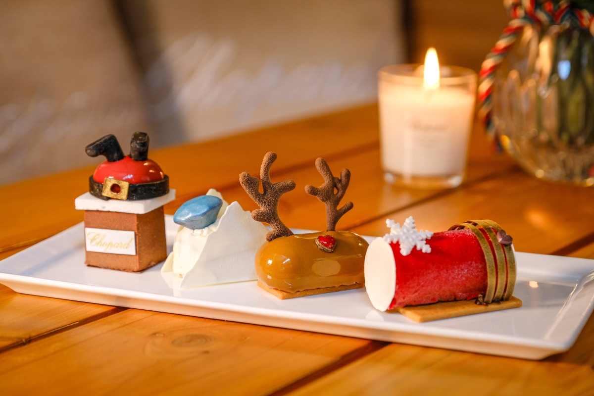 Chopard節日下午茶以品牌的聖誕北極熊Arty與夥伴們的旅程為靈感,由心形鼻子的開心馴鹿啟程,一起尋找冬日海洋瑰寶(三文魚配魚子醬)與及Happy Hearts心形盒子(龍蝦三文治)。當北極熊Arty乘坐著鵝肝醬牛油麵包開始其歷奇之旅,途中更需要伸出援手幫助被困在Chopard聖誕煙囪蛋糕的聖誕老人!