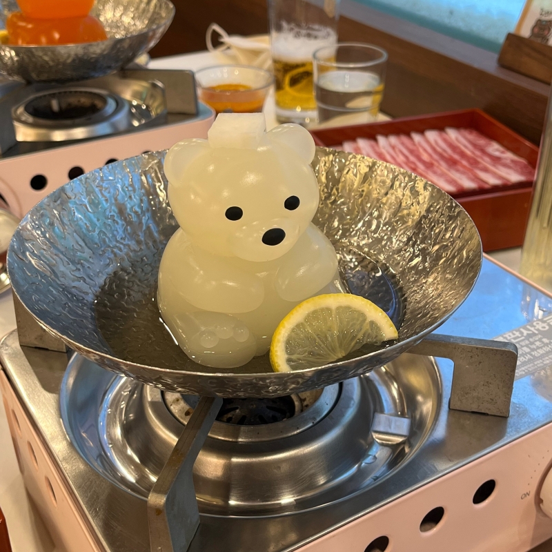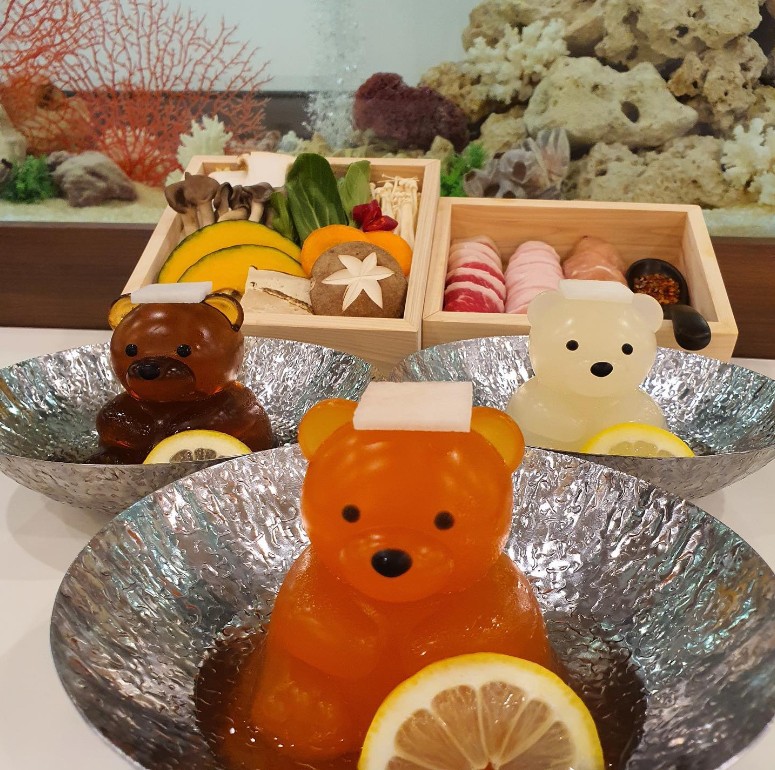 (圖片:안녕쿠마) 店家把各款的湯底冷凍成為溫泉小熊造型的冰熊,更逗趣地為小熊配上不同的配飾,例如把蒟蒻、蘿蔔放在小熊頭上當作浸溫泉時所用的毛巾,大大增加了打卡程度,難怪吸引大量女生們來店朝聖了!QQ彈彈的小熊,拍一下腦袋就會像果凍一樣彈跳,然後隨著溫度的升高慢慢融化成濃郁湯汁,趣味十足。 冬天就是要吃如此可愛的小火鍋呀,快快收藏這家餐廳,為下次首爾自由行做準備吧!