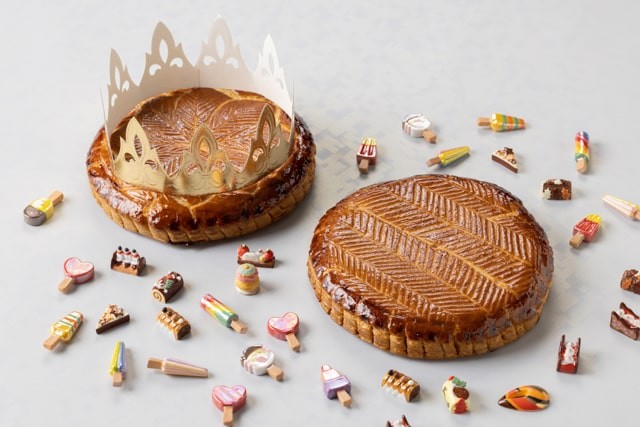 每年1月6日,法國都會吃國王餅(Galette des Rois,或稱couronne des Rois,即“國王皇冠”之意),作為天主教主顯節(Épiphanie)的傳統糕點,歷史可以追溯到13世紀古羅馬時代。因此,每年臨近年底聖誕節前後,各大烘焙店都會開始推出自家的國王餅。國王餅中還藏了小瓷偶,這個小瓷偶法語稱為fève,意為“蠶豆”。在最古老的國王派中確實是使用蠶豆,一直到了近代,蠶豆才被小瓷偶取代。由於蠶豆形狀類似人類胚胎、且能夠保存一整年,特別適合在年終慶典中作為獻祭,祈求豐收與子孫繁茂。吃到小瓷偶的人就能成為當日的國王(Rois)或皇后(Reine),並擁有一整年的好運,和中國北方在餃子中銅錢有異曲同工之妙。 傳統的國王餅是以千層酥皮包著混合杏仁奶油餡加上甜點奶餡製成的杏仁奶餡而成,並在塗了蛋液烤成金黃的千層酥皮上,以刀刻畫出放射狀的圖樣。來到今天當然有不少變奏版本,在香港也不難找到,大家不妨品嚐這美味糕餅來應應節。 1、Maison Kayser