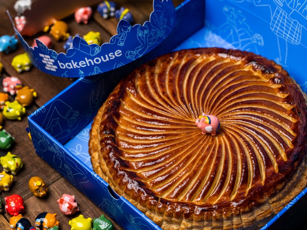 Finessence Pâtisserie國王餅HK$488 法式甜品網店Finessence Pâtisserie由曾經任職米芝蓮二星餐廳L'Envol的糕餅主廚Mandy Siu創辦,Mandy還曾被選為2021年最佳糕餅師,其糕餅不論外型及味道都設計都貫徹其精細優雅風格。Mandy製作的招牌國王餅更是不容錯過,因為每一材料都是最高質素及細心挑選。除了每年都供應的傳統版本,今年特別與法國乳製品牌Elle & Vire合作推出限量特別版。烘烤後刷上一層產自於香港本地的冬蜜和蜂花粉,提升甜味和香氣。這個直徑18厘米的國王餅,頂部的對稱圖案還是由Mandy親手雕上,可見非常用心。至於藏在國王餅內的陶瓷小飾物,Mandy則專程找來香港陶瓷藝術家Jennifer Tai和她的團隊The Toki Studio,以日本陶瓷和獨立手工雕刻出蜜蜂圖案,象徵國王餅中的蜂蜜風味。 供應期:即日起至2023年1月21日 價格:HK$488 限量供應15個 網上訂購請按此 3、Bakehouse