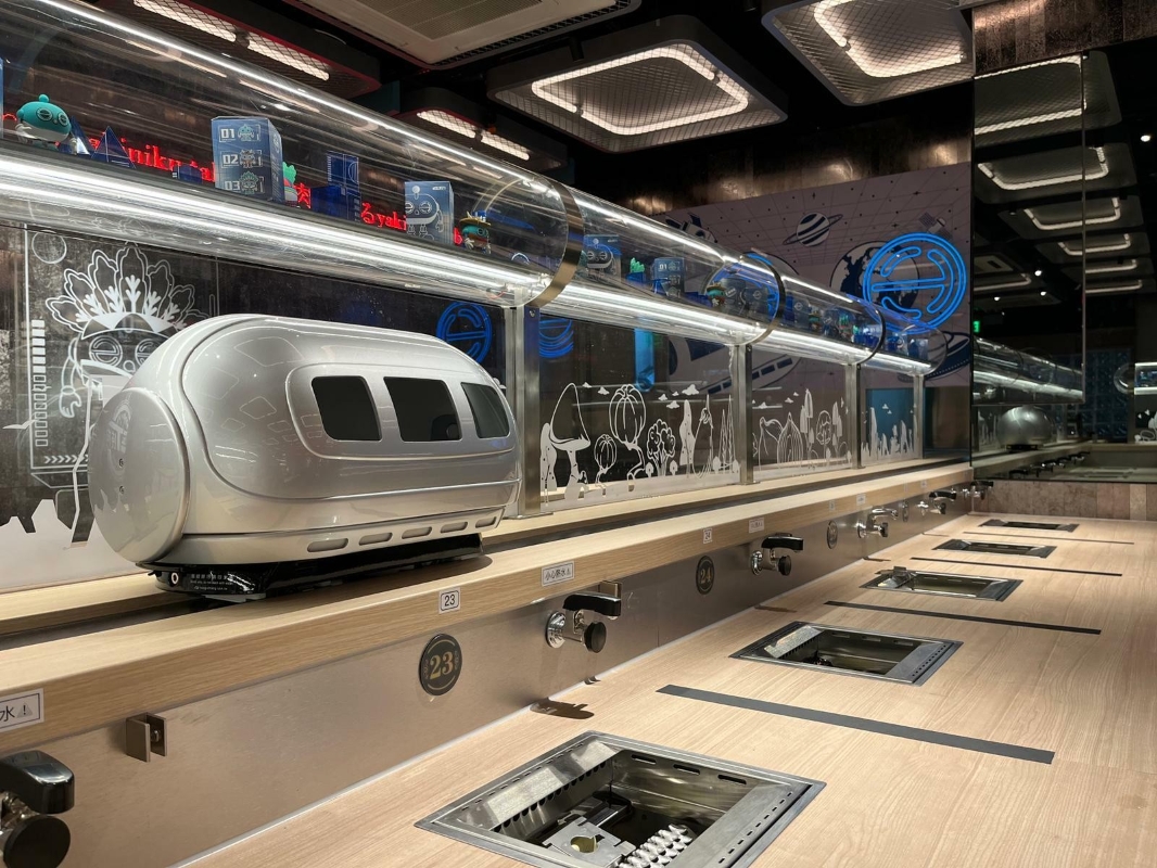 香港新聞網1月5日電 位於沙田河畔花園的智能新派日式燒肉店Eat,以充滿科幻感的星球與外星人為主題,主打高質日式燒肉,手機下單後會有“外星飛船”直送到枱上。