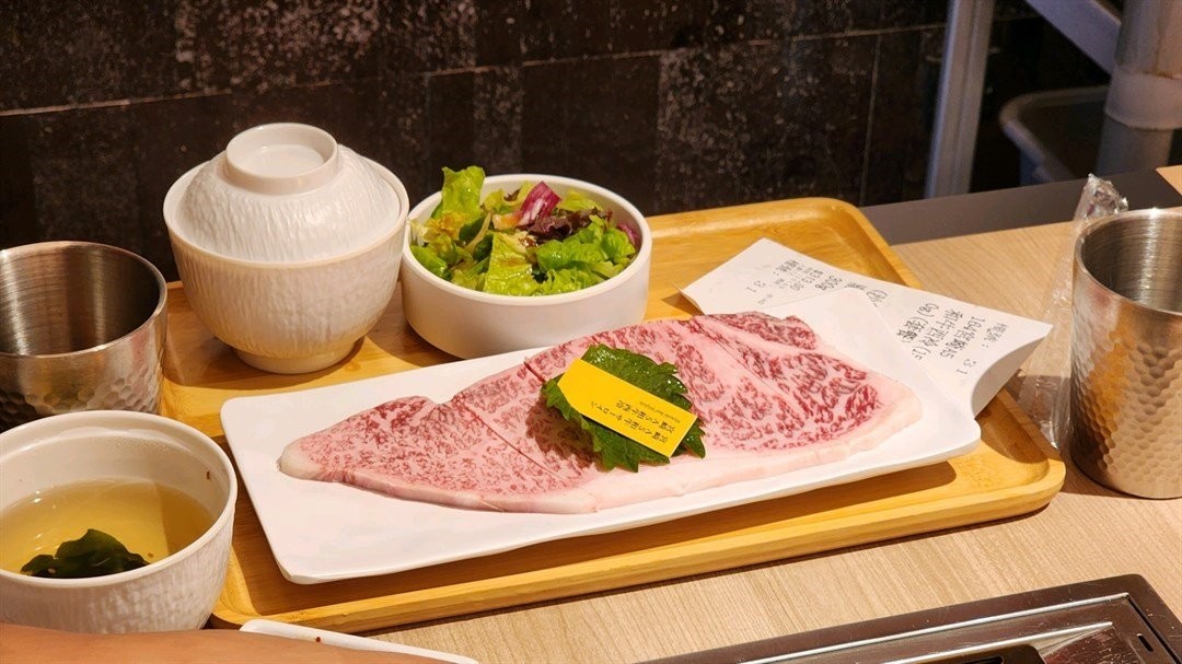 (圖片:Yakiniku Tabeyo) 店舖提供多款CP值超高的燒肉套餐,和牛、韓牛、豬肉、雞肉一應俱全,最平的牛五花套餐HK$48/100g有交易。想吃豪一點,可點選宮崎和牛套(HK$178/100g;HK$268/200g),包括A5和牛肉眼蓋、A4和牛肩肉及A4和牛三角腩,肉味十足。宮崎A5和牛臀薄切燒套餐(HK$168/100g;HK$258/200g),精選宮崎A5和牛色澤紅潤,霜降均勻散佈,肉質細緻軟綿。套餐配上白飯、沙律或自家製泡菜,及昆布清湯減輕油膩感。