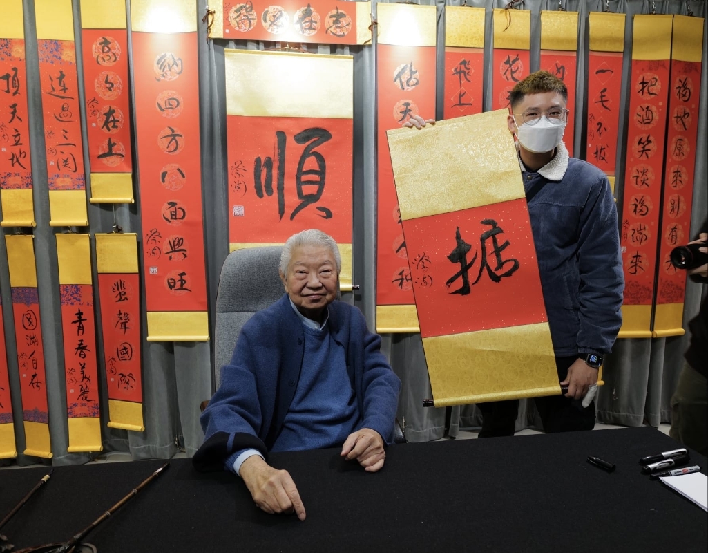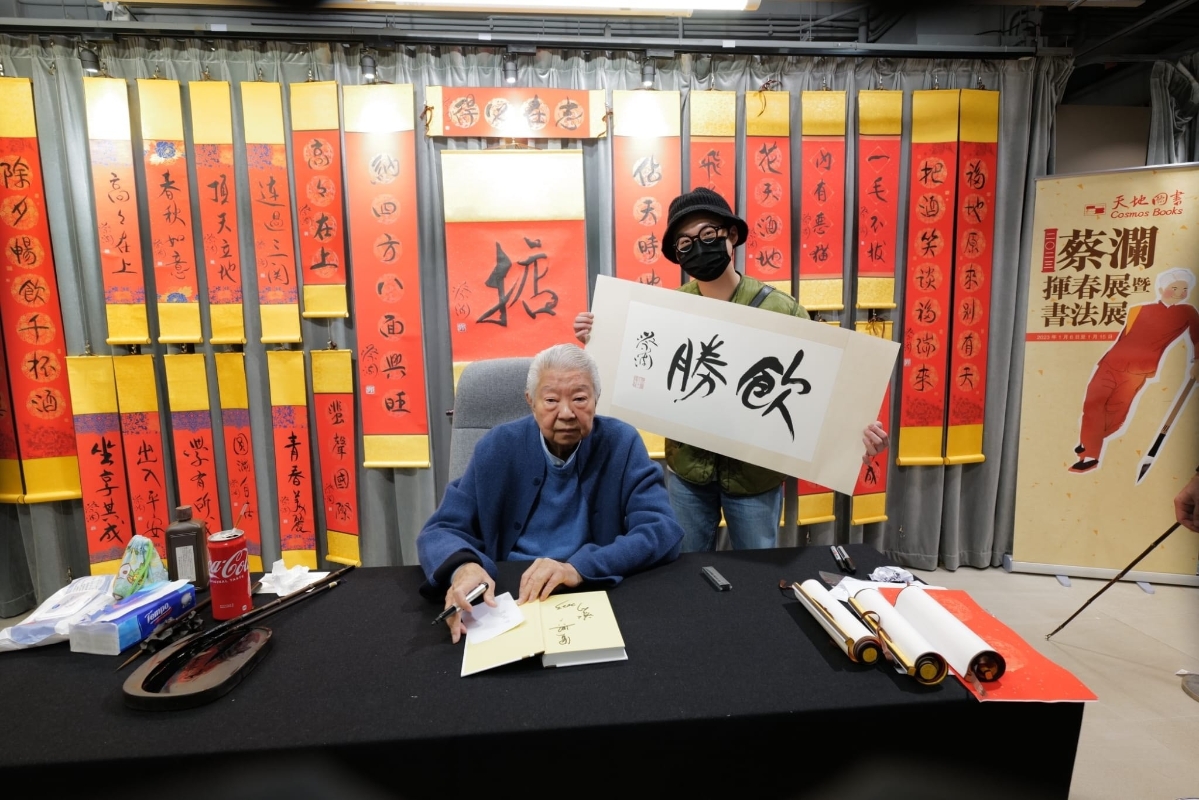 (圖片:天地圖書) 蔡瀾一連兩個星期周末下午2至4時都在現場,吸引大批書迷與朋友。81歲蔡瀾精神抖擻,大筆一揮“掂、酒到病除、笑到最後、內有惡貓”等等鬼馬字句,即席揮毫之外又大方與觀眾合照,有人拿他幾十年前出版的書索簽名,蔡瀾偶題“見故書如遇老友”。 蔡瀾揮春展暨書法展2023 日期:即日起至1月15日 時間:上午10時至下午8時 地點:天地圖書(香港灣仔莊士敦道30號地庫內堂展覽廳) 蔡瀾即場題字時間: 日期:1月13日(五)、1月14日(六)、1月15日(日) 時間:下午2至4時 【編輯:黃璇】