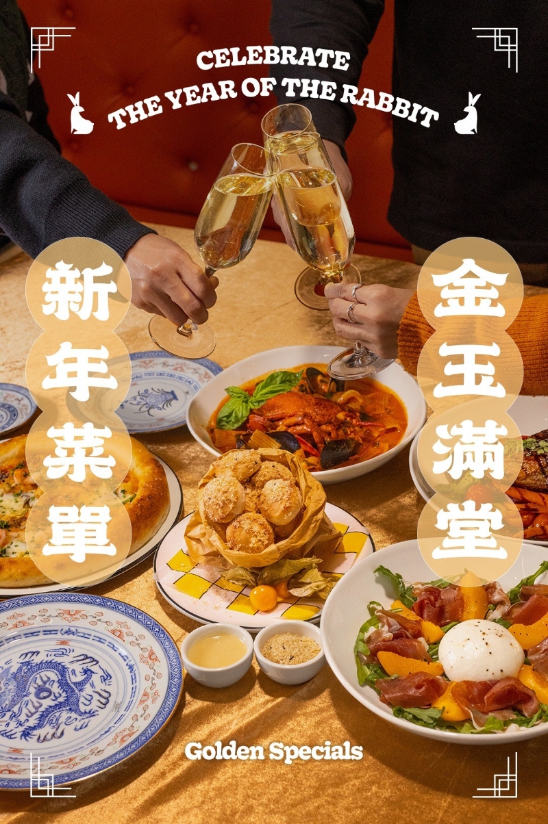 PizzaExpress推出“金玉滿堂”新年菜單 金玉滿堂新年堂食4人套餐 4人套餐售價為HK$988,包括:軟心芝士帕爾馬火腿烤蜜桃拼盤、金玉滿堂海鮮薄餅、黑醋油封鴨腿伴烤蔬菜、意式龍蝦海鮮湯粗管通粉、糖不甩麵包球。此套餐除了堂食亦可外賣自取或經Deliveroo戶戶送/foodpanda訂購。惠顧4人套餐更可獲贈汽酒一瓶(價值HK$328)。