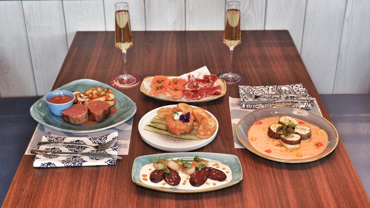Quiero Más 7道菜地中海菜單 在Quiero Más享用精緻的7道菜現代地中海菜單,展開一個浪漫假期。豐盛的開胃菜包括西班牙凍湯湯配生蠔及Per Se魚子醬,再送上鮮嫩多汁的牛肉他 他配西班牙麵包,以及不容錯過的36個月伊比利亞火腿炸丸子和香煎帶子配魚子。主菜方面則為你呈獻香橙番紅花汁鱸魚配椰菜花、和牛配薯泥、嫩菠菜及蘑菇,盡享地中海風味。最後以令人愉悅的千層酥配白朱古力忌廉和覆盆子結束盛宴。Quiero Más的情人節菜單僅於2月14日當天限時供應。 Quiero Más 地址:中環威靈頓街2號M88 20樓 查詢:+852 2383 0268 The Bayside