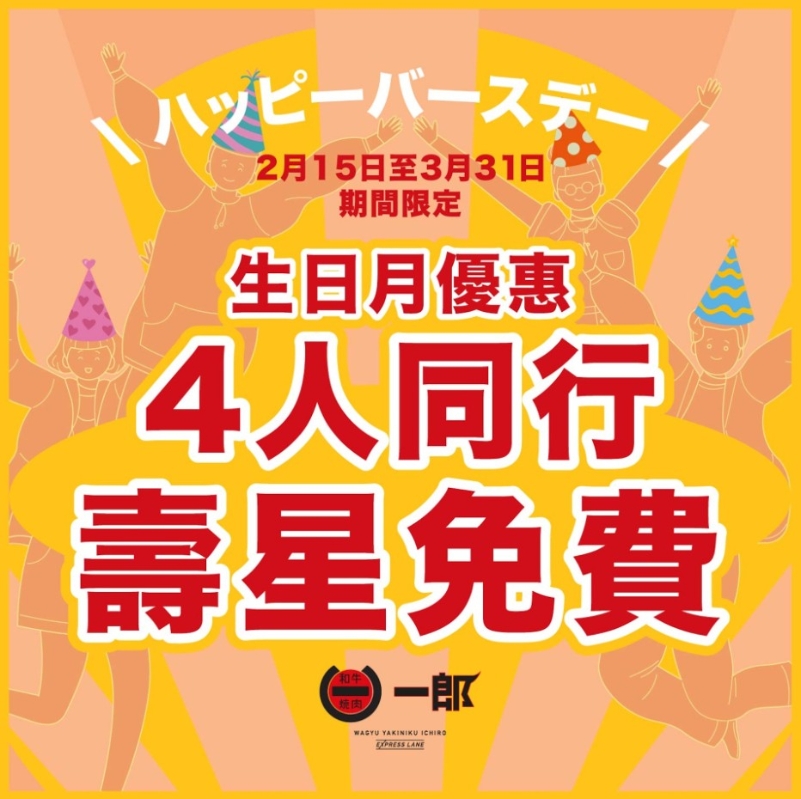 和牛燒肉一郎推出4人同行壽星免費優惠(圖片:和牛燒肉一郎)