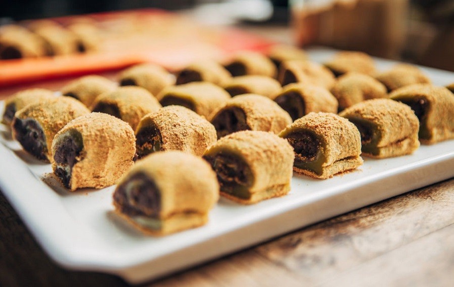 李家超初次品嚐豆汁(視頻截圖) 豆汁是以綠豆為原料,將澱粉濾出製作粉條等食品後的剩餘殘渣進行發酵產生的,具有養胃、解毒、清火的功效。北京人把喝豆汁當成是一種享受。對於第一次喝豆汁的人來說,那帶有酸臭的發酵氣味或許令人難以下嚥。但如果食客敢於捏着鼻子喝兩次,有些人竟能上癮,可謂令人“愛恨交織”的名小吃。 9、糖卷果