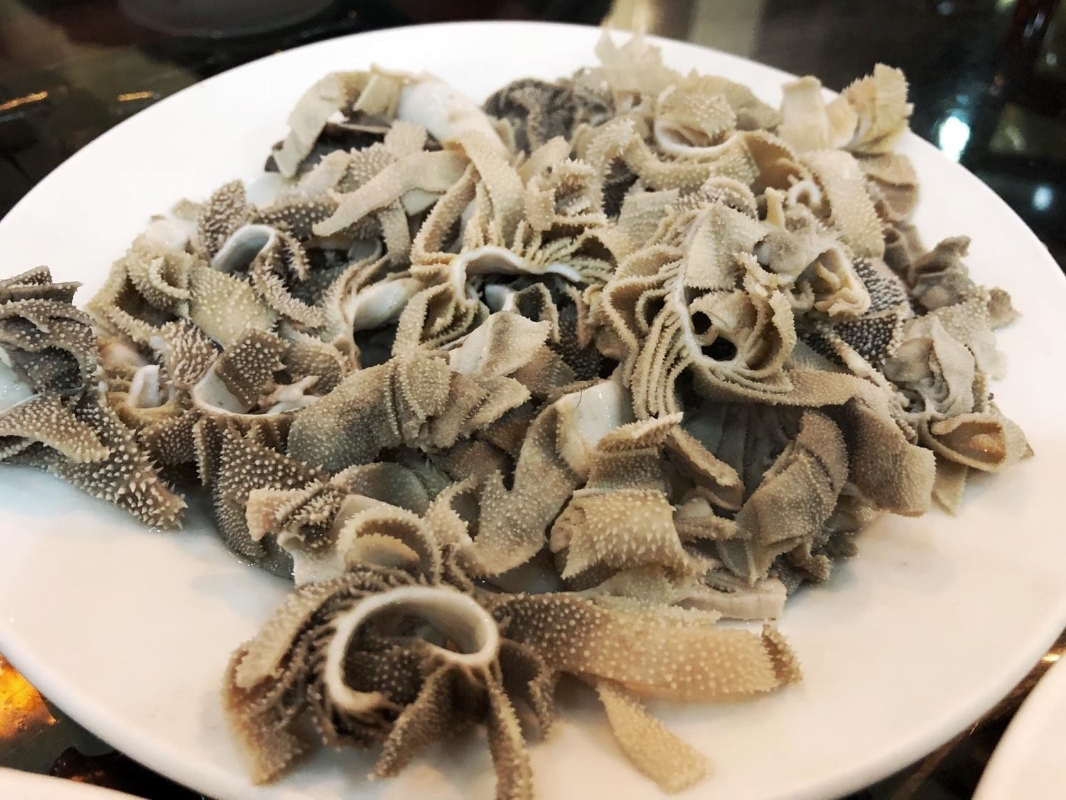 “方磚廠69號炸酱麵”謝霆鋒也曾光顧 一道傳統的中式麵食。流行於北京、河北、天津等地,由菜碼、炸醬拌麵條而成。將黃瓜、香椿、豆芽、青豆、黃豆切好或煮好,做成菜碼備用。然後做炸醬,將肉丁及蔥薑等放在油裏炒,再加入黃豆製作的黃醬或甜麵醬炸炒,即成炸醬。麵條煮熟後,撈出,燒上炸醬,拌以菜碼,即成炸醬麵。也有麵條撈出後用涼水浸洗再加炸醬、菜碼的,稱 “過水麵”。“方磚廠69號炸酱麵”傳聞是“全北京最好吃的炸醬麵”,港星謝霆鋒曾光顧過,店裏招牌的炸醬麵,30多元人民幣一碗,分量十足。 7、爆肚