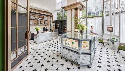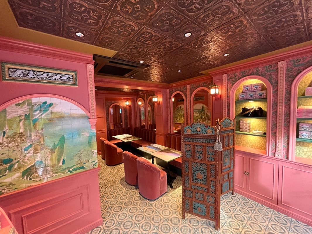 東京特色甜點店“小樂園”。(圖片:KLOKA) 從大門口便可以感受到“小楽園 TEA SALON & BOUTIQUE”與眾不同的風格,粉色的大門與內部的色調一致,一進到小樂園裏便能感受到濃濃的異國風情。
