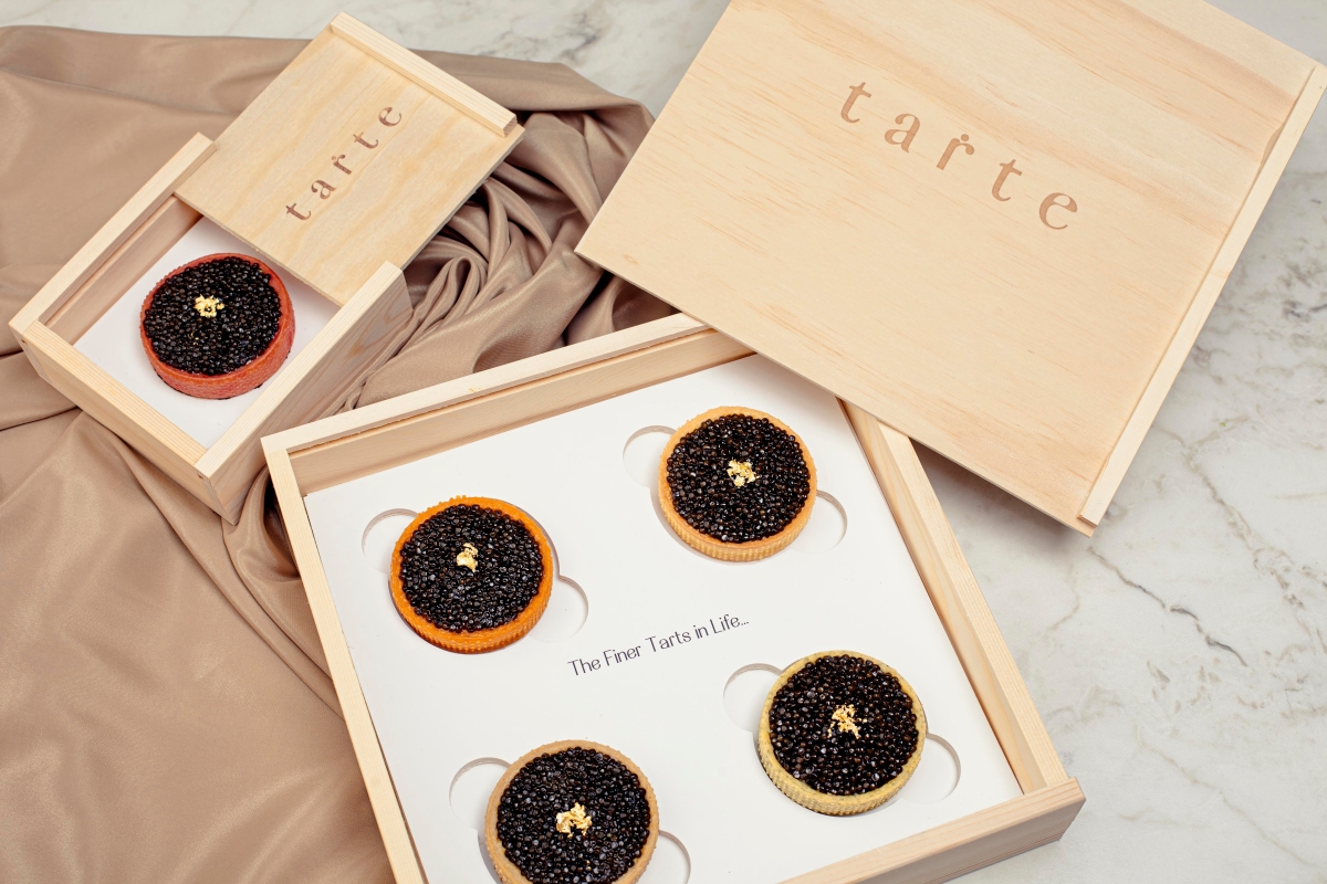 招牌魚子醬撻。 自學成才的烹飪師 中埃混血兒Rania於香港土生土長。由於她自幼接觸不同文化,成長背景讓她愛上美食。在紐約留學期間,她更對烹飪產生熱情,開始嘗試為親朋好友炮製各種美食。適逢當時她的鄰居是一位退休法國大廚,在他的悉心指導下,Rania開始掌握法式烹飪藝術、瞭解如何結合不同食材創造出真正的美味,以及如何透過擺盤訴說一個個故事。在2016年至2018年間,Rania的丈夫於東京工作,她亦盡力抽空學習日式料理,進一步增進她烹飪知識及食譜。 回港後,Rania便將事業重心轉移到餐飲業,成立會員制私房菜RH Fine Dining,主打法國及日本料理。當大部分餐廳均暫停營業時,Rania把握機會,為城中最具影響力的人物提供與別不同的晚餐,並以精緻的烹飪風格為人知曉。在RH Fine Dining成功後,Rania希望再下一城,將她的作品普及化,讓香港饕客亦能在Tarte一嚐她至臻完美的食譜。 一口大小的低調優雅 主廚Rania是個天生的完美主義者,堅持以細節成就完美,花了整整半年的時間研發及完善法式餅撻的食譜。由擺盤、口味、再考慮到整個用餐體驗,經過多次試驗和微調後,才於私房菜菜譜中正式登場。 Tarte對食材的用料執著,所有食材特意選自日本和歐洲,打造一系列與別不同的法式餅撻供於網上訂購。除了深受食客擁戴的鹹撻,Tarte亦有推出一系列甜撻,以優質的時令水果呈現別緻的水果撻。