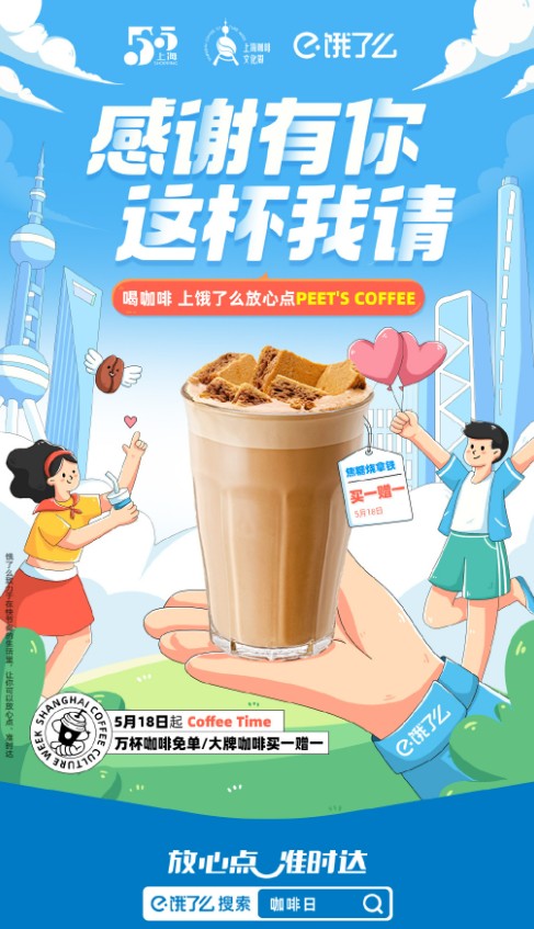 香港新聞網5月18日電 上海擁有全國最多的咖啡店,在咖啡文化氛圍如此濃厚的城市,“喝咖啡”已經成為大多數“魔都”人的生活方式及社交禮儀之一。2023上海咖啡文化周將於5月20日至6月2日舉行,在此期間期間,餓了麼App特別發起“感謝有你,這杯我請”主題活動,請上海人免費喝咖啡。 今日(18)日,餓了麼App發起Coffee Time萬杯咖啡免單活動。即日起至6月2日,品牌將不定期掉落咖啡買一贈一、第二杯半價、大牌咖啡折扣等超值福利。餓了麼攜手上海咖啡文化周,用咖啡連接人與人、人與城市之間的情感,解鎖“咖啡外賣社交禮儀”新玩法。