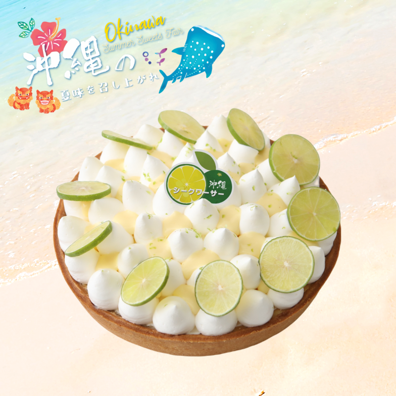 沖繩香檸撻。 21cm的“沖繩香檸撻”以沖繩當地特產的香檸為主角,自家製杏仁撻皮配上清新自然的沖繩香檸果醬及蜜糖檸檬乳酪忌廉、加入沖繩海鹽製成的沖繩香檸忌廉及沖繩香檸醬,面層以新鮮泰國青檸薄片作裝飾,充滿夏日氣息。