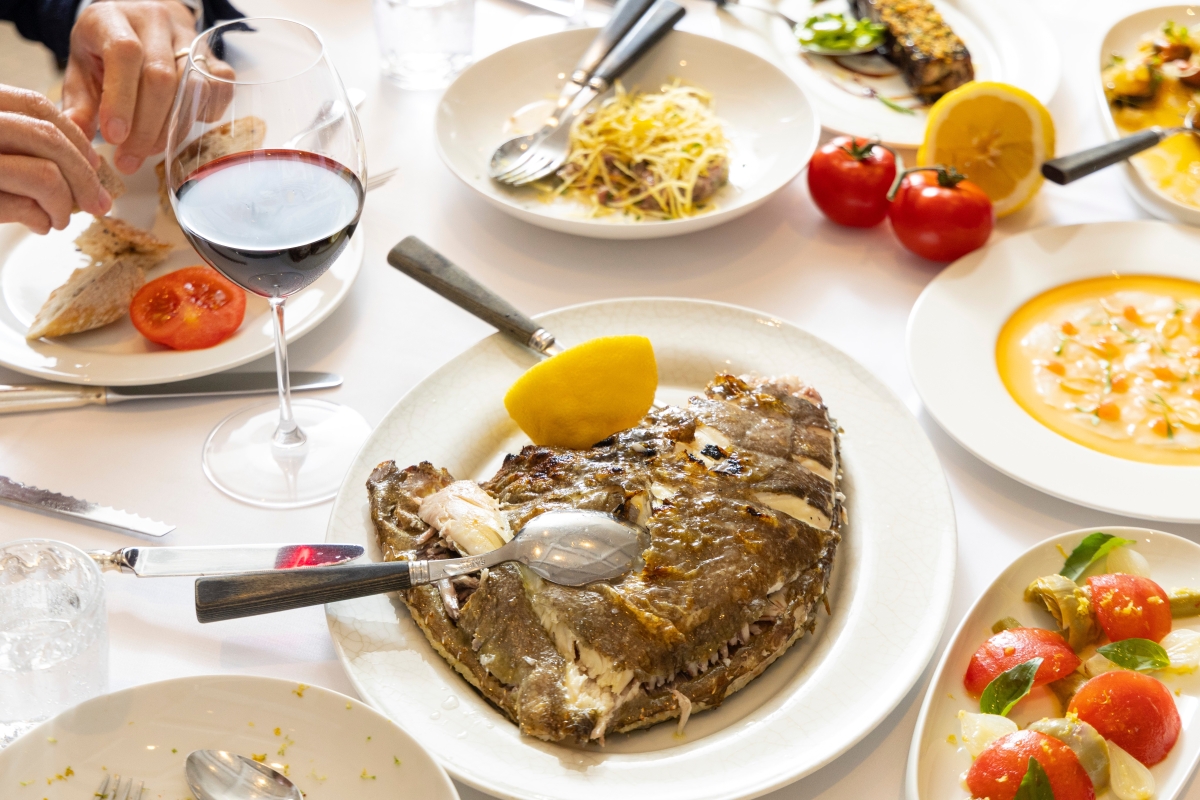 主菜之一,原條烤多利魚。 而在烹調海鮮時,最能體現出“少即是多”的理念。LPM的“薄切鯛魚刺身”細膩可口,完美突顯優質食材的天然風味。這道菜餚選用來自日本的野生鯛魚炮製,魚肉醃好後切成薄片,佐以鮮甜的紅西柚醬汁、切粒西柚、杏仁片和新鮮芫荽。另一方面,“自家製波浪麵配大蝦和小魷魚”亦以最簡單的方式呈現出海產的最佳滋味。小魷魚及大蝦與辣椒、尼斯橄欖和意大利青瓜絲一同輕炒,然後加入紅椒和番茄醬,再拌入手工製作的波浪麵,最後灑上新鮮羅勒和橄欖油享用。 主菜方面,賓客可以品嚐“原條烤多利魚”(時價)。法國捕撈的原條多利魚塗上檸檬橄欖油,然後搭配鮮嫩雅枝竹、番茄花瓣、小洋蔥和羅勒,再加上白香醋和檸檬皮,令人回味。若想品嚐更豐盛的主菜,不妨試試“油封羊肩”。羊肉經過調味後慢煮過夜,再壓一天成形,肉質非常鮮嫩多汁。羊肉塗上濃郁的肉汁後,加入清新的薄荷以平衡味道,再配搭香脆藜麥和細香蔥以帶來口感對比,並以豌豆蓉、新鮮豌豆和蠶豆增添甜味。 【編輯:黃璇】