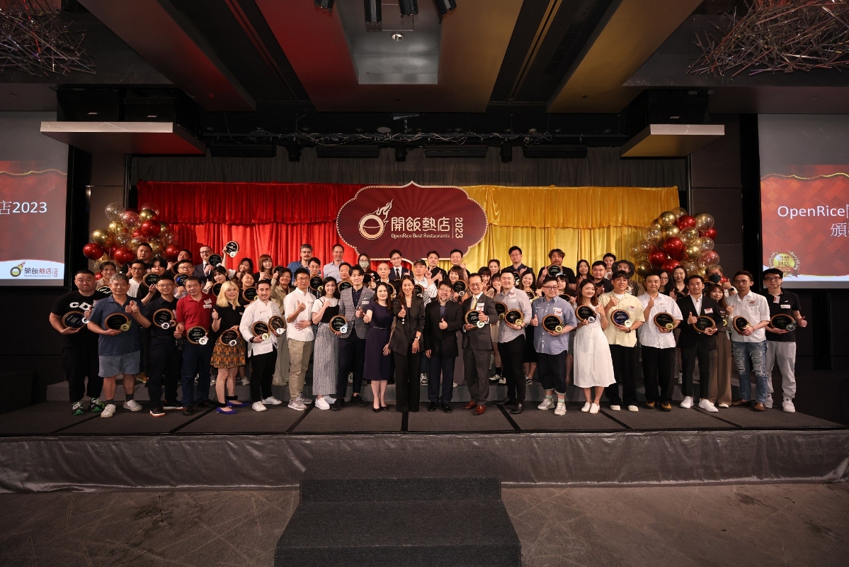 OpenRice頒獎嘉賓與所有得獎餐廳代表於“OpenRice 開飯熱店 2023”大合照。 每年OpenRice都為“OpenRice 開飯熱店”加入不同新元素,令活動能夠更盛大和多樣化,從而凝聚本地各大小優秀餐廳,鼓勵他們不斷提升其服務、環境及食物質素,合力為本地飲食界再創高鋒。OpenRice於2022年新增全新兩大組別——“外賣自取餐廳”和“網上訂座餐廳”,讓更多的伙伴能夠參與其中;另外今年“OpenRice 開飯熱店 2023”則為“菜式”及“新餐廳”組別劃分金、銀、銅獎,令彼此間產生良性競爭,而一眾得獎餐廳更具份量,並期望所有同業能夠持續改進,為顧客與下年的獎項而努力。