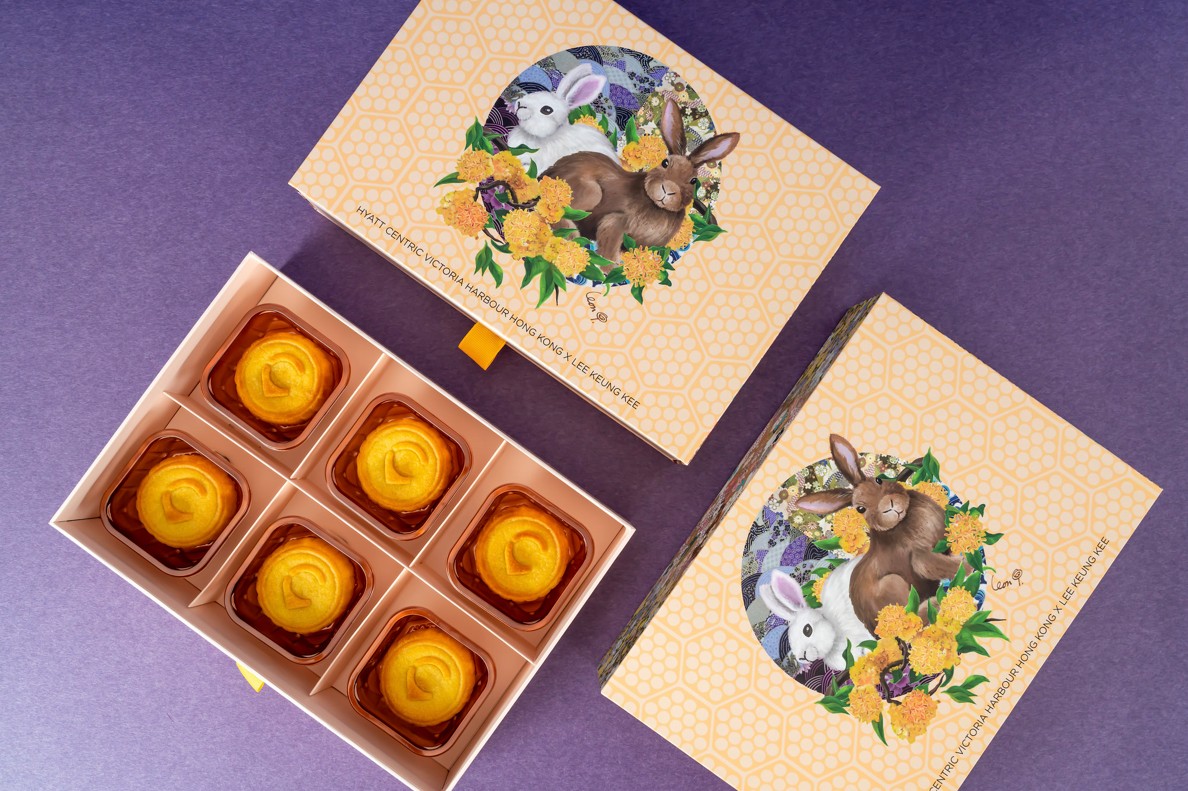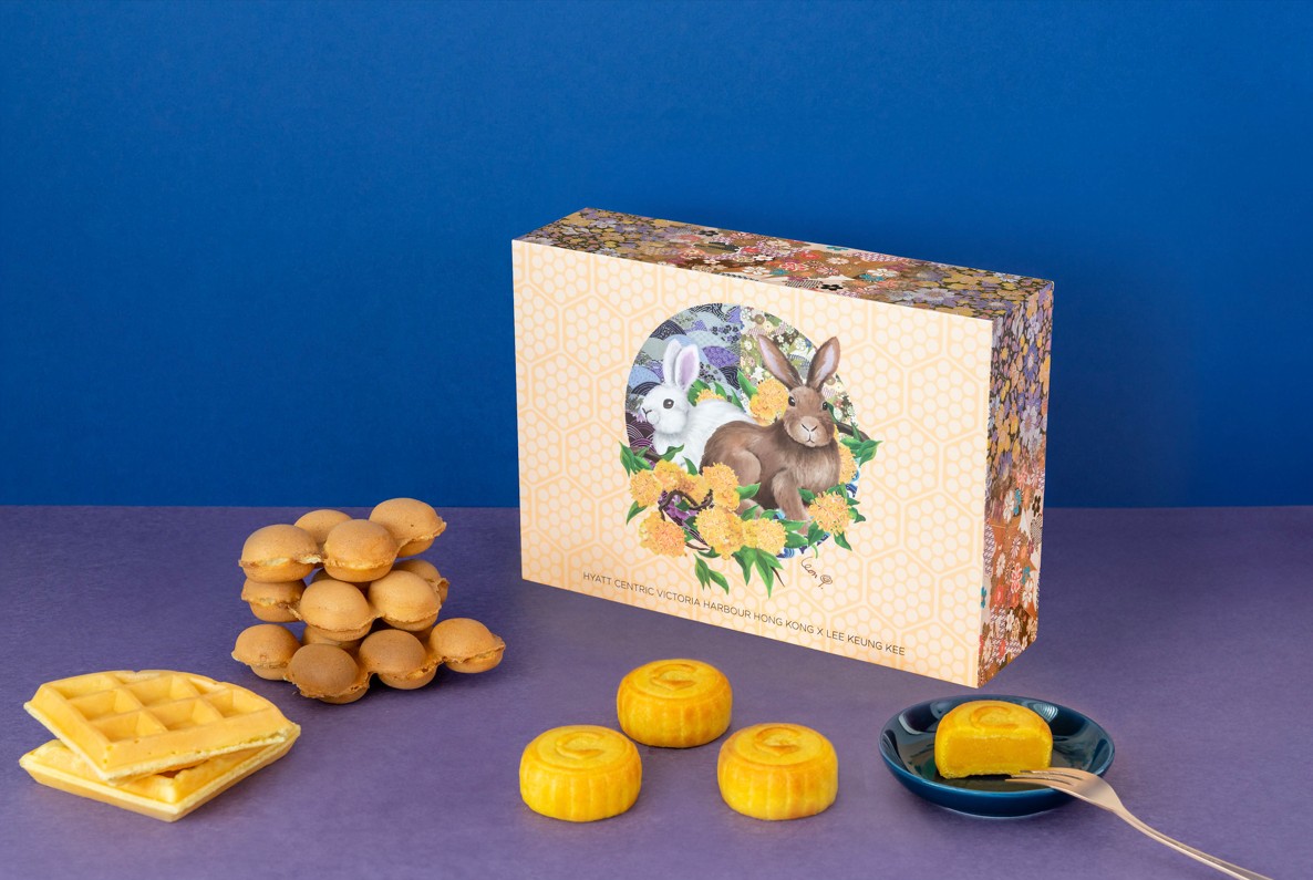 香港新聞網7月20日電 趁著中秋佳節,香港維港凱悅尚萃酒店與北角著名美食店“利強記雞蛋仔”合作,推出以傳統街頭小食“雞蛋仔”及“格仔餅”作靈感的月餅口味,務求以全新方式演繹香港經典。月餅禮盒由香港本地藝術家Leon Lollipop設計,以生動的繪畫呈現中秋的象徵——明月和兔子。