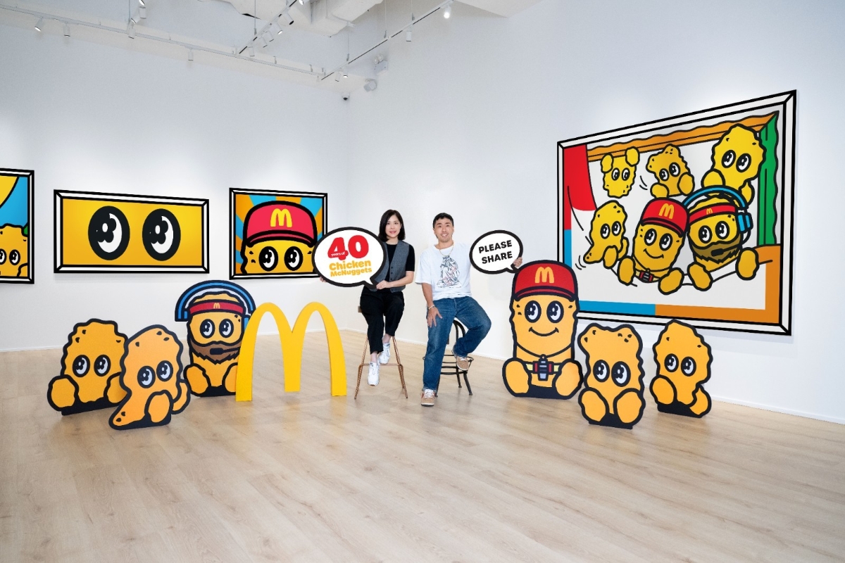 香港麥當勞行政總裁黎韋詩(左)與多界別創作總監暨麥樂雞40周年藝術展覽策展人Kevin Poon合照。 “Coach McNugget Art World”展覽由Kevin Poon策展,以“Please Share”為主題帶來5位當代藝術家作品,從他們獨特的藝術視角詮釋麥樂雞在過往40年為大眾帶來的趣味,並重新呈現麥樂雞經典代表人物——Coach McNugget及為其換上全新形象,更帶來一眾可愛度“爆燈”的新成員組成Team McNuggets,與大家一同遊走創作世界。 5位當代藝術家包括美籍韓裔藝術家VANDYTHEPINK、來自英國的著名童趣風格藝術家Jon Burgerman、美國街頭藝術家UFO907、擅用傳統“韓紙”創作的韓國燈飾雕塑藝術家Gyuhan Lee,以及來自荷蘭的數碼藝術家FrankNitty3000,攜手於7月29日至8月20日期間在西九文化區藝術展亭打造“Coach McNugget Art World”,以獨特藝術視角出發,一探過往40年麥樂雞為大眾帶來的趣味。 屆時,訪客可先走入“時光隧道”了解麥樂雞小故事,欣賞共20件色彩斑斕的作品包括畫作、立體展品及互動數碼裝置;大家亦可即場發揮創意,為麥樂雞設計全新形狀,創作不同“藝術品”,讓大會有機會將其作品上載至元宇宙;甚至將可愛精美的Team McNuggets雷射紋身貼在身上,讓身體變成流動藝術展廳。大家在觀賞展覽的同時,亦可走到室外,於展區外與巨型麥樂雞盒及Team McNuggets互動打卡。(視頻來源:香港麥當勞) 【編輯:黃璇】