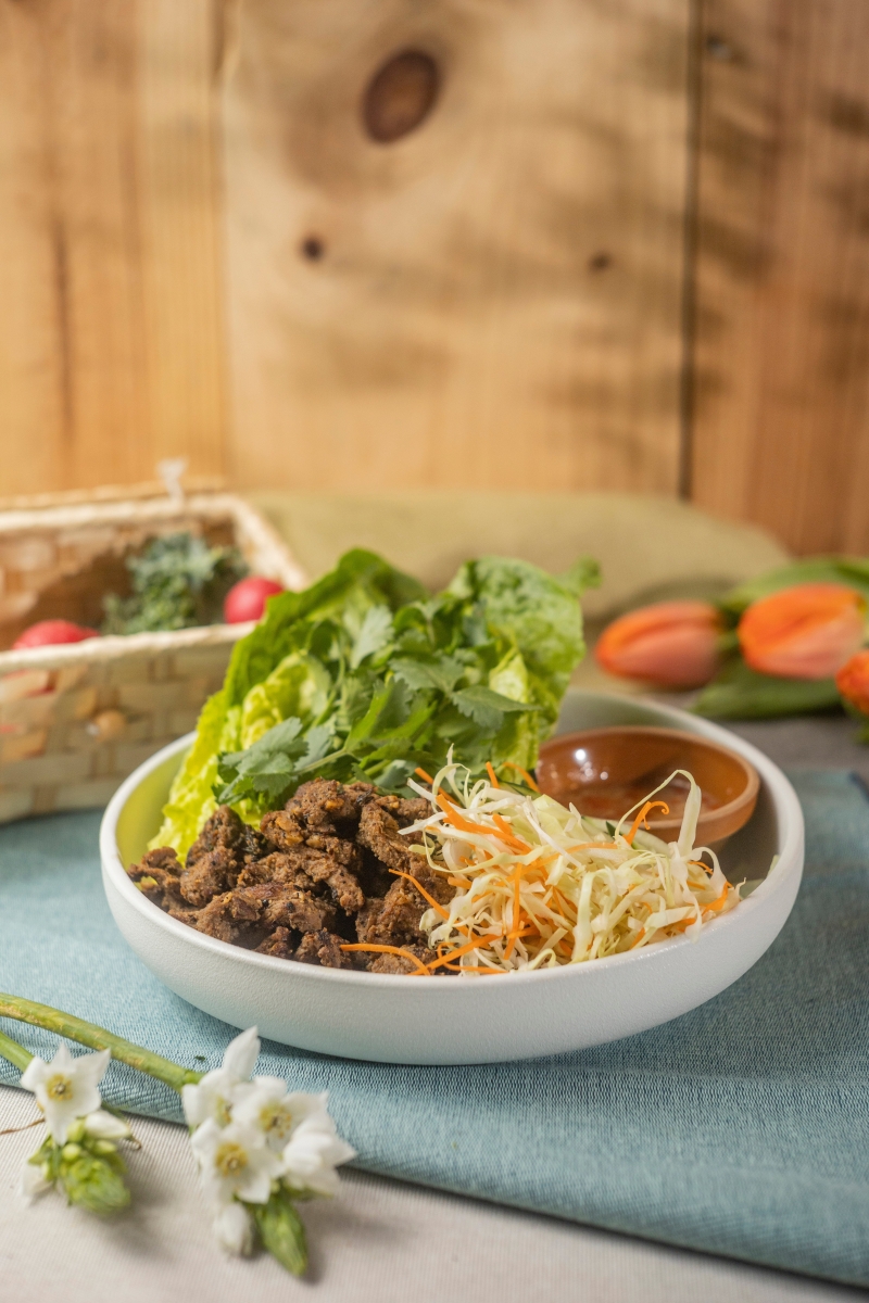 小茴香牛肉生菜包配泰式蘸醬。 “Flash Coffee”Mikiki店全新工業風面貌 “Tiger Lily”全新甜品系列