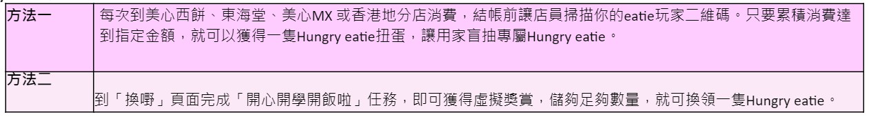 香港新聞網9月21日電 踏入9月新學季,美心集團的美食手遊“eatie”聯同浸信會愛羣社會服務處“童心飯堂”推行“開心開學開飯啦”。eatie玩家只要參與遊戲任務,製作並送贈一份虛擬健康麵包或有營飯餐,美心集團就會捐出一份相同的實體美食予“童心飯堂”,為低收入家庭和小學生提供免費早餐及有營飯餐。活動更不限玩家捐贈次數,目標是讓有需要家庭及小朋友齊齊“食飽飽”。 玩遊戲同時送上心意發揮“食、玩、分享”精神 eatie以嶄新“食、玩、賞”概念作招徠,透過玩手機遊戲贏取實體獎賞。是次“開心開學開飯啦”活動,召集玩家由即日起至9月30日在玩遊戲同時,透過eatie及童心飯堂完成任務,玩家亦會得到虛擬獎賞,有機會換領全新“Hungry eatie”遊戲小幫手!玩家可將自家專屬的Hungry eatie派駐虛擬店舖“打工”,以助縮短完成任務時間、賺取額外食材和口水幣,幫助玩家贏取更多獎賞。