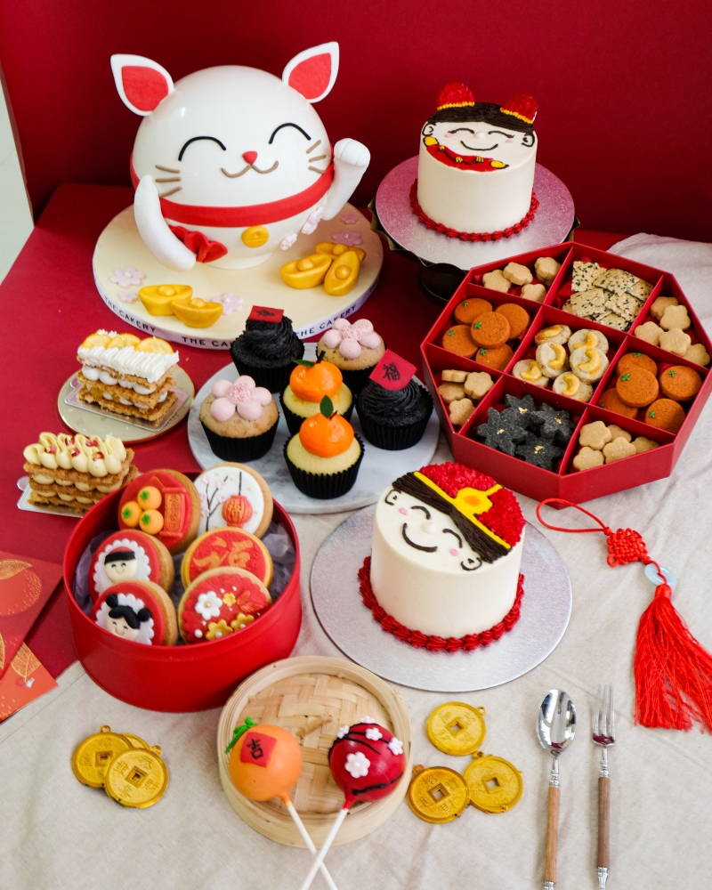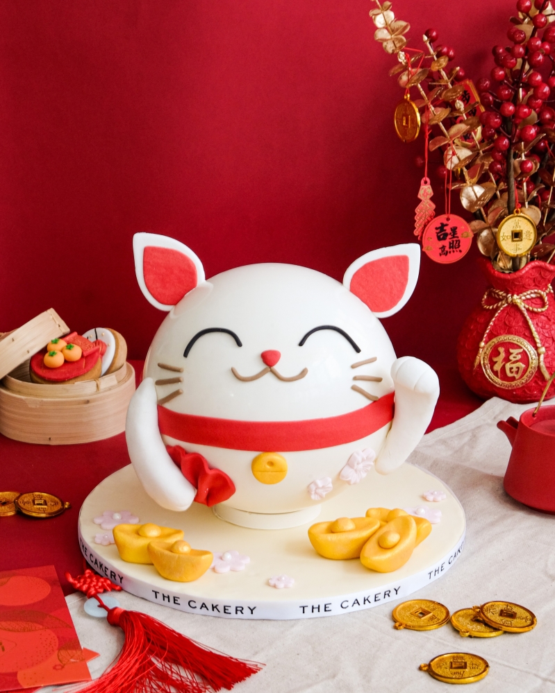 The Cakery推出一系列蛋糕、曲奇甜點等,熱烈歡迎龍年的來臨。 The Cakery於農曆新年特別設計矚目耀眼的招財貓敲敲蛋糕。外觀以象徵幸運的招財貓作裝飾,內藏色彩繽紛的糖果,充滿無限驚喜。當中包括香港懷舊糖果之一的大白兔糖、薑糖、金元寶朱古力、椰子軟糖等,帶來無比快樂。