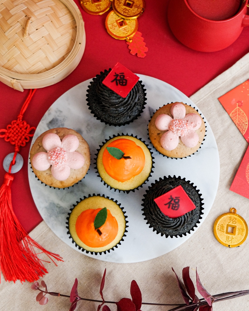 無糖農曆新年全盒,內含五種不同口味的無糖曲奇。 The Cakery以精美的杯子蛋糕而聞名,今個農曆新年特別推出龍年杯子蛋糕禮盒(件裝/6件裝/12件裝)。三款翻糖杯子蛋糕包括繁榮富貴“福”字造型的無麩質和無乳製品、寓意好的人緣的桃花和有機大桔杯子蛋糕,以代表新年的好運和繁榮。