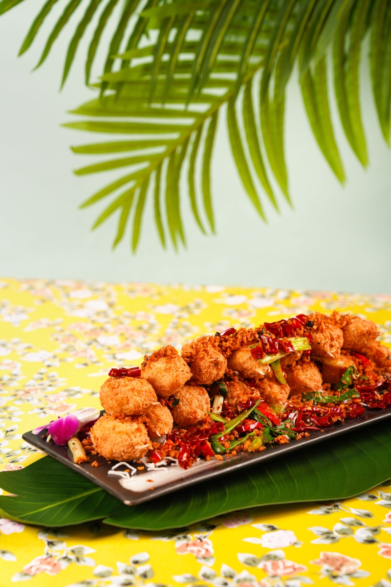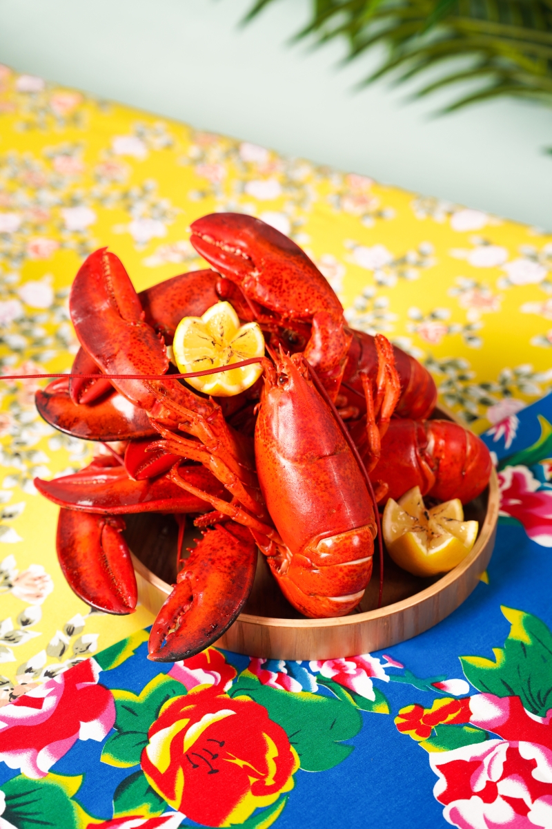 即蒸活波士頓龍蝦。 今次更推出多款東南亞海鮮菜式,讓客人一次過品嚐多地海鮮菜式。包括即蒸活波士頓龍蝦,配以十款醬汁,如充滿東南亞特色的泰式辣汁、酸子醋、青檸魚露汁、泰式辣汁等。其他焦點海鮮菜式還有泰式青檸蒸魚、蕉葉參巴醬烤魚、越式粉絲蟹煲、泰式香茅蝦串、越式青口湯等;鍾情日韓美食的客人,更不可錯過一系列惹味菜式如韓式烤魷魚、辣豆腐海鮮湯、日式吉列蠔、汁燒帆立貝等。 另外,更有充滿本土風味的椒鹽鮮魷、清蒸海紅斑,以及避風塘炒蟹的變奏版避風塘蟹鉗,以香蔥、薑、蒜和辣椒乾等爆香,蟹鉗鮮香肥美,蒜香及辣味並重,非常惹味。