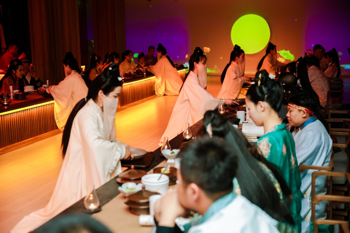 這家名為宮宴的主題餐廳,還原古代帝王宴請賓客的場景。(圖片:北京日報) 在北京具代表性的歷史文化街區——前門大街,一家名為宮宴的主題餐廳在網絡爆火。該店創新“演藝式餐飲”模式,還原了古代帝王宴請賓客的場景。食客分坐舞台兩側,一邊觀看古裝表演,一邊品嘗古風美食。 據了解,宮宴通過歷史考究設置了一套完整的流程。食客在就餐前著古裝,說雅言。在琴瑟和鳴中,身著宮廷服裝的“宮女”按古代宮廷禮儀上菜。其菜品亦很考究,實行“一季一朝”的四季主題設計,每個主題菜品都是貼合時令。宴席以“一道菜一個演出”的形式,其間還有飛花令等古代行酒令游戲,一餐可以持續3小時。 通過特色服飾、特色環境、特殊禮儀、特色表演、特色餐飲、特色活動等,讓顧客瞬間穿越古代。餐廳創始人行斌說:“在這個雅集空間,顧客在休閑的時間,可以體驗妝造、茶藝等中國傳統文化,到了用餐時間,身著漢服用餐看演出,一整天都會被美好包圍。” 記者調查發現,這類主題餐廳在北京人氣頗高,且持續火熱。一位從事餐飲行業的陳女士表示,一方面,這類餐廳經營者并非為了玩噱頭掙“快錢”,而是請大廚在菜品上下功夫,菜品品質得到了消費者認可;另一方面,隨著內地民眾消費水平的提高,對於文化類服務更舍得,認為吃飯也是一種文化體驗。內地著名美食紀錄片《舌尖上的中國》《風味人間》在全球熱播,背後亦是民眾對飲食文化的追捧。(完) 【編輯:黃璇】