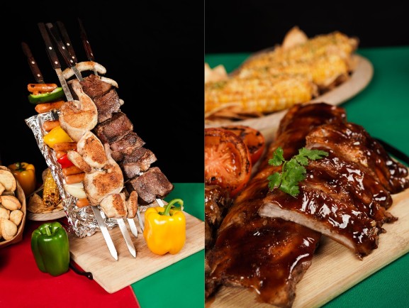 巴西烤肉(左)、醬燒豬肋骨。 客人更可於即製墨西哥夾餅專區,依個人口味隨意配搭餡料及特色辣醬,餡料包括手撕豬肉、牛肉、烤雞肉,可自行配上近十款配料,如墨西哥莎莎醬、酸忌廉、辣豆、墨西哥辣椒等,創作自己專屬的墨西哥夾餅。
