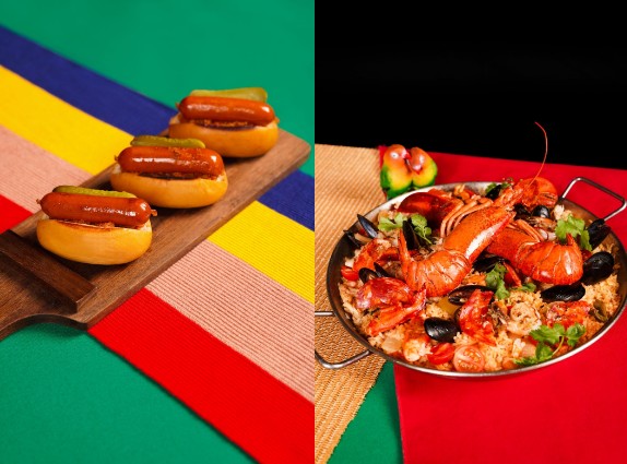 阿根廷香腸三明治(左)、龍蝦海鮮飯。 阿根廷最具代表性的街頭小食阿根廷香腸三明治(Choripán),香腸配以烤至香脆的麵包,一嚐街頭小食的簡單美味;同樣是阿根廷傳統小吃的阿根廷餡餅,酥脆的麵皮下是核桃和蕃薯,香甜不膩。 海鮮愛好者不容錯過多款海鮮美食,如清新開胃的檸檬汁醃三文魚和墨西哥辣椒蝦薄餅。富西班牙特色的龍蝦海鮮飯,帶焦香的飯粒,配以蝦、波士頓龍蝦、青口等,海鮮精華融入飯粒中,啖啖濃郁鮮味。 此外,下午茶自助餐還提供多款南美甜點,包括阿根廷焦糖牛奶夾心餅、酥皮忌廉卷筒、海鹽朱古力牛奶焦糖撻等,亦可品嚐到西班牙炸油條(Churros),更可自行沾上不同配料及醬料,如朱古力醬、椰絲、開心果碎等。 【編輯:黃璇】