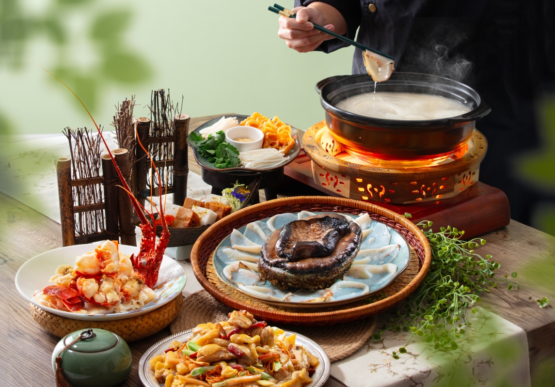 “1頭澳洲黑邊鮑魚片皮鴨餐”。 順德菜作為粵菜重要分支,不但講究“清、鮮、爽、嫩、滑”,更著重傳統精湛烹調手藝。翠亨邨用上當季時令食材,帶來多道以繁複工序見稱的巧手功夫菜;而全新推出的“春到嚐鮮順德菜”兩大套餐及九道單點菜式重新演繹了多款經典順德菜,採用豐富多樣又能代表嶺南風土的食材,呈現“食不厭精,妙在家常”的嚐味境界。 其中九道全新順德菜式涵蓋各種烹調方法,以廚師功力煮出頂尖美味:順德魚雲羹、油泡黃金冧哥魚、陳皮煎金錢鱔、黑魚子玉帶炒鮮奶、銅盤蒸原味雞、生煎鮮蝦豬肚餅、紅蔥頭抽水果芹菜、黃湯龍蝦煮陳村粉及金銀倫教糕,為你呈上最地道的順德美饌。 “1頭澳洲黑邊鮑魚片皮鴨餐”(每席12位用)不但包括順德手工菜最精妙而具代表性的菜式,且升級改用名貴而更符合現代飲食口味的時令食材,讓你得到前所未有的順德菜體驗:例如以順德傳統烹調方法精製的1頭活澳洲黑邊鮑魚湯過橋,將鮑魚及魚湯的鮮味互相配合提升,切成薄片的鮑魚展現輕盈爽嫰口感;由順德炸鮮奶變化而成的鍋貼牛奶,將配上煎魚餅為食客呈上;北京片皮鴨及二食為套餐添上一道濃郁重彩。“海鮮薈萃套餐”(4位用)則包羅萬有,既有採用多款優質海鮮的龍蝦海鮮薈,亦有鮮美不膩的鹿茸菇燉太和雞,讓你盡嚐當代廣府美食的精髓。 【編輯:黃璇】