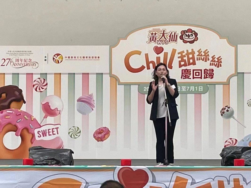 香港新聞網6月30日電 “黃大仙Chill甜絲絲慶回歸”於6月28日至7月1日一連四天在黃大仙廣場舉辦,獲黃大仙區議會及黃大仙民政事務處支持。中國香港文化體育旅遊協會主席林鄧雯蕙女士表示:“香港這個融匯中西的國際大都會,迎來回歸祖國第27周年,我們非常期待市民踴躍參與這個歡樂慶典。” 為慶祝香港回歸祖國27週年的大日子,各界推出多項活動及優惠,中國香港文化體育旅遊協會在黃大仙舉辦別開生面的甜品市集“黃大仙Chill甜絲絲慶回歸”,現場設有多個攤位,以香港獨特的甜品文化為主題,展現香港東西方融合的魅力,更有小食工作坊,讓市民親身製作經典小吃。商戶亦準備了各式各樣的優惠,務求令市民盡興而歸。 現場設有超過30個特色甜品攤位,售賣各款傳統中式甜品、創新甜點以及融合中西元素的精品糕餅,包括龍鬚糖、糖蔥餅、冰糖葫蘆、蝴蝶酥,還有創意十足的果汁海燕窩及花字糖等,定能滿足市民的味蕾。香港擁有悠久的糖藝甜品傳統龍鬚糖作為古時的禦用甜點,要從麥芽糖仔細抽煉出成千上萬條細緻綿密的纖絲,需要巧手及熟練工藝。本地手藝工匠會在傳統小食工作坊,示範製作龍鬚糖,讓市民深入瞭解傳統工藝,更有冰糖葫蘆及雪花酥教學,市民親身體驗之餘,亦可以將技藝傳承。各大商戶準備了多款優惠與市民同享回歸喜悅,包括指定飲品買一送一、日本布甸7送1、及指定產品7.1折優惠等等。 凡於美食攤位消費,即可獲印章一個,儲滿4個印章即可參加巨型扭蛋機活動。現場更特別設置高逾1.5米的巨型糖果打卡裝置,裝置採用繽紛奪目的顏色設計,營造出甜蜜夢幻的氛圍。
