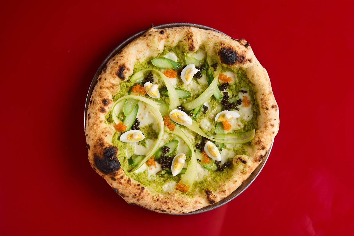 以蘆筍、魚子醬和飛魚籽為主的“Primavera”。 為慶祝此次入圍,Vesu Pizza Bar特別推出了一系列春季限定菜單,將意式傳統與創新風味巧妙結合。五款全新薄餅各具特色,包括以蘆筍、魚子醬和飛魚籽為主的“Primavera”,以及以紫洋蔥、意大利煙肉和核桃碎為特色的“Cipolla Rossa”。此外,“Mortazza”薄餅以布拉塔芝士和意式肉腸為主,搭配開心果醬,層次豐富;“Patate e Salsiccia”則結合烤薯仔、香腸和煙燻芝士,帶來濃郁的鄉村風味。最後,向經典致敬的“Carbonara”薄餅,還原了正宗的意式風味,搭配風乾豬頰肉和蛋黃醬,令人回味無窮。 煎鍋薄餅與特調飲品的創意搭配