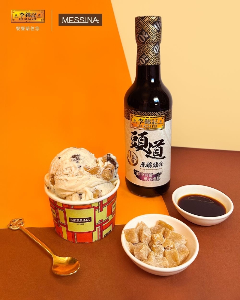 “豆味濃”豉油豆腐花意式雪糕配李錦記頭道原釀頭抽製成的粒粒豉油布朗尼及豉油麻糬。 李錦記深諳醬料調配之道,過百年來不斷探索醬料與不同食材配搭的可能性,創出多款家傳戶曉的經典醬料;而來自澳洲的Gelato Messina則堅持手工製作,自設農場生產食材,由雪糕基底到各種雪糕配料均由自家製作,確保雪糕品質。這次別出心裁的聯乘,巧妙結合了李錦記對醬料製作的匠心工藝,與Gelato Messina對意式手工雪糕的極致追求,為味蕾帶來前所未有的創新體驗。