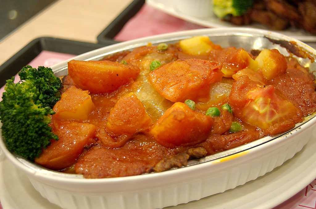 1964年油麻地太平館餐廳搬遷新址新張。(圖源:太平館餐廳官網) 上世紀五六十年代,香港茶餐廳的厨師們面對西方飲食文化的衝擊,展現出驚人的創造力。他們並未全盤照搬瑞士焗豬扒飯的做法,而是巧妙融合本土元素:用中式豉油腌製豬扒,以港式蛋炒飯墊底,再淋上茄汁、撒上芝士焗烤,創造出獨一無二的“港式焗豬扒飯”。戰後香港的焗豬扒飯經歷了多次演變,豬扒、炒飯、焗製這三大元素始終不變,而配料和醬汁則成為創新的關鍵,衍生出鮮茄、白汁芝士、咖喱等多種版本。