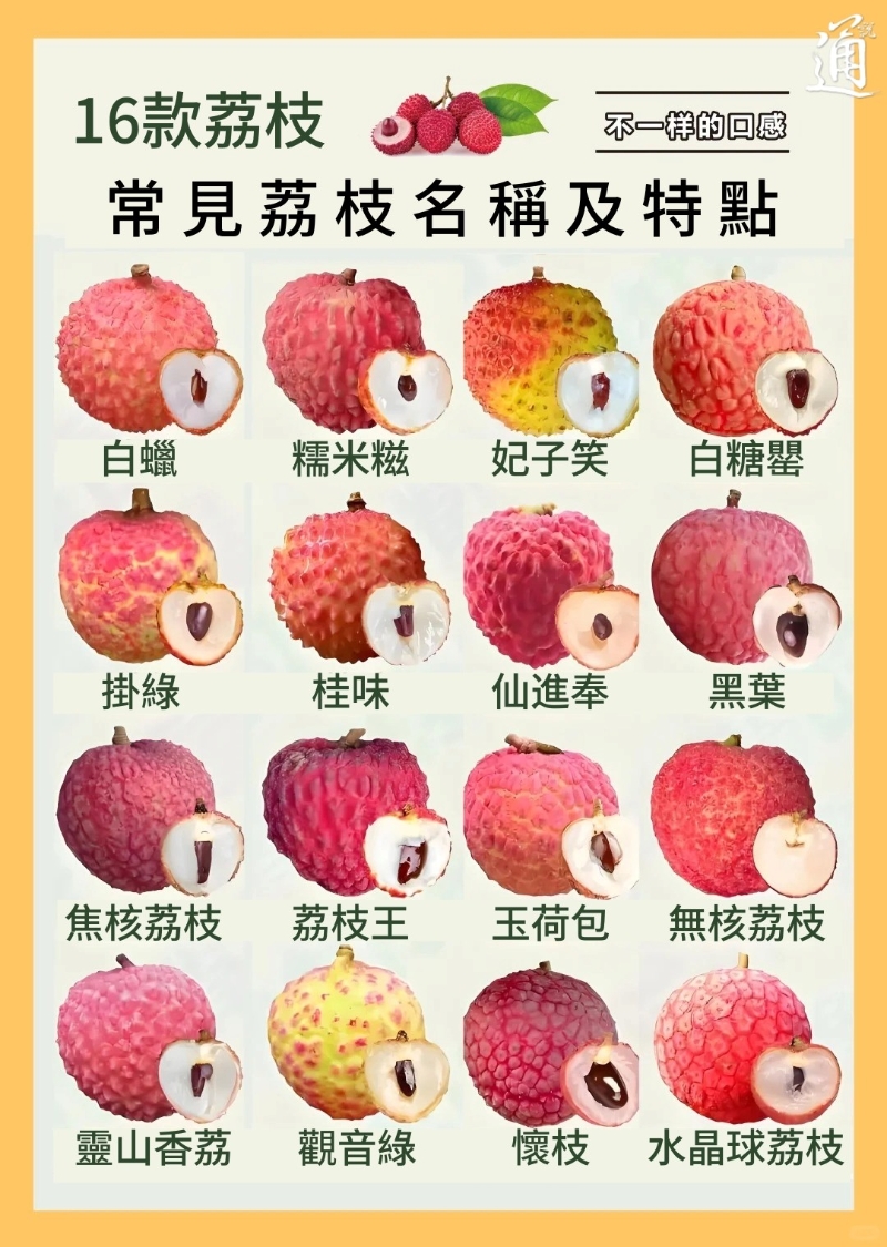 16種常見荔枝名稱及特點。(香港新聞網製圖)