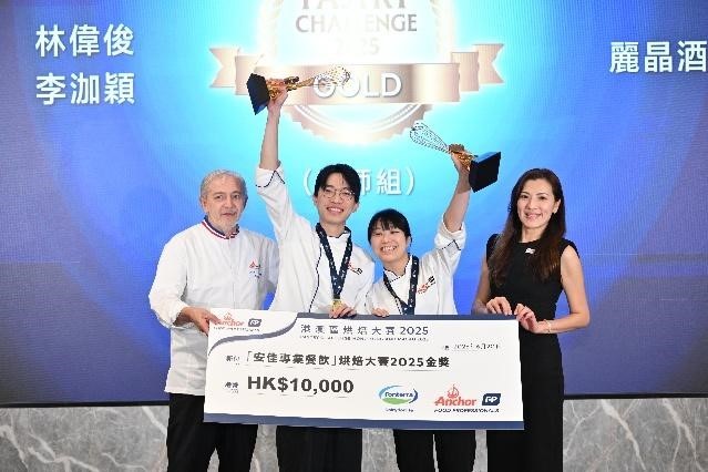 安佳港澳區烘焙大賽2025圓滿結束 香港麗晶酒店奪金香港新聞網6月30日電 由安佳專業餐飲主辦、廣受業界矚目的 “港澳區烘焙大賽 Anchor Pastry Challenge 2025”已於6月18日及20日在國際廚藝學院圓滿舉行比賽環節,並於香港富麗敦酒店舉行頒獎典禮。廚師組金獎由來自香港麗晶酒店的林偉俊和李泇穎奪得,作品“蝶願織影”和“爸.生”從眾多專業隊伍中脫穎而出,榮膺桂冠。學生組金獎則由國際廚藝學院的陳清堯及吳岱螢獲得,作品分別為“媽媽的味道”和“山楂南瓜籽酥”,展現非凡創意與技藝。