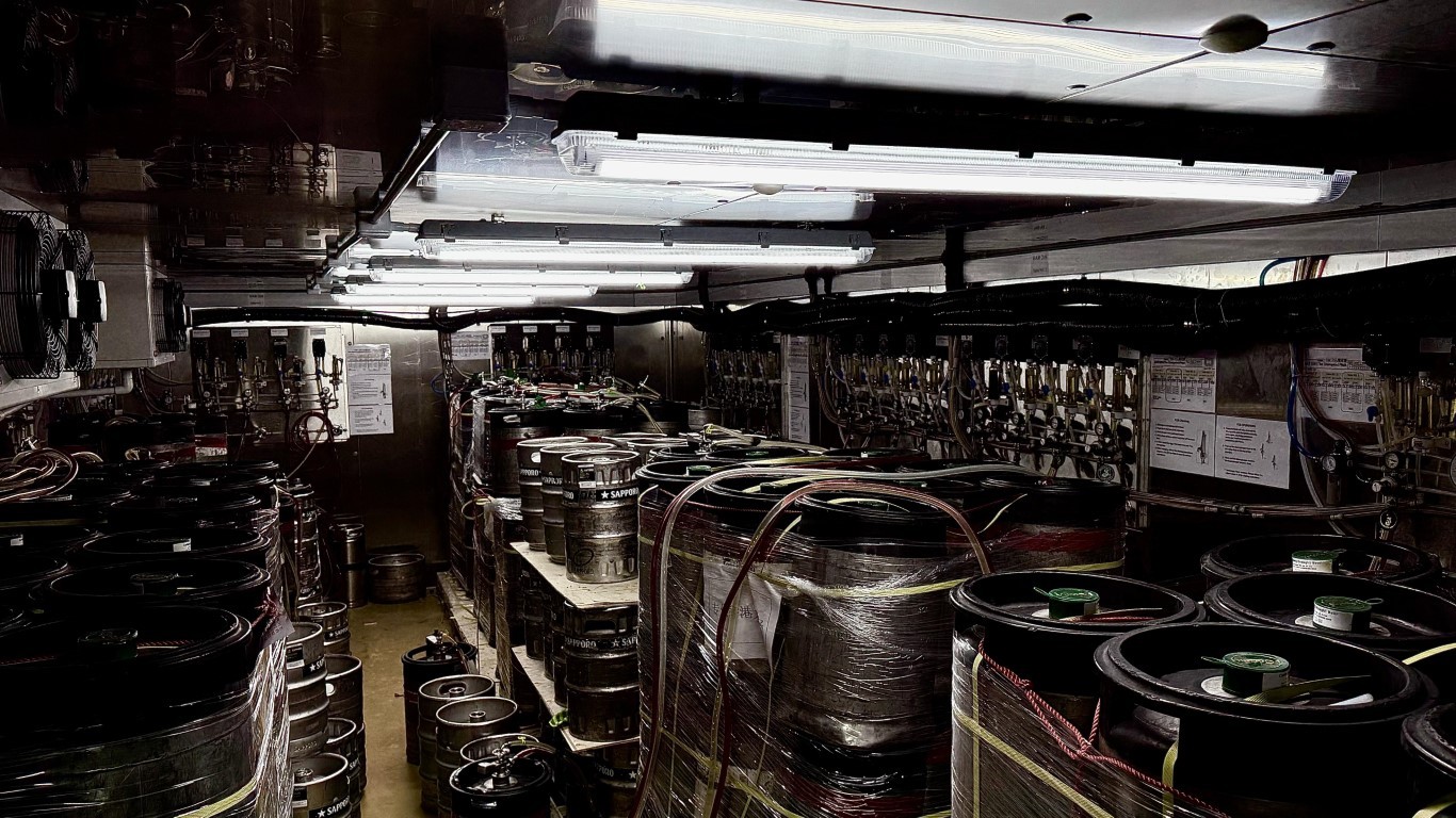 啟德體育園主場館內共有12個啤酒儲存庫,共儲存1800個啤酒桶。 啟德主場館內有12間全天候控溫啤酒儲存庫,可儲存最多1800桶共約5.4萬公升啤酒。儲存庫是專門供應9款品牌啤酒給The Champion的,體育園場館美食站營運領班謝誌航稱,自啟德主場館開幕以來啤酒需求最多是一連3日的七欖賽,供應逾6萬升啤酒,即超過2000桶啤酒。 雙邊設計酒吧共長約100米酒吧設多款娛樂設施,包括8條電子飛鏢賽道、兩張美式桌球枱同兩張桌上足球機,本月底還會有兩部一級方程式模擬駕駛器;場內有逾25部電視,可直播足球及欖球等賽事,每逢周三至周日有樂隊及DJ駐場演出。(完) 【編輯:黃璇】