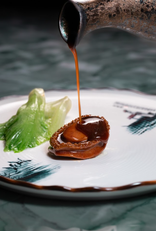 慢煮三十頭南非吉品鮑魚。 香港啟德帝盛酒店啟福樓呈獻“中秋月圓”午市及晚市套餐。晚市套餐彰顯經典粵菜之華彩,以涼伴黑白木耳、潮式花甲王與雙色金磚豆腐拉開序幕,隨後奉上滋補鮮美的鹿茸菌竹笙杞子螺頭燉雞。主菜為蝦籽鮑汁柚皮扣鵝掌,賓客亦可選擇升級品嚐南非三十頭吉品鮑魚伴天白花菇。另有櫻花蝦楊桃爆蝦球、飄香紅蔥頭雕皇蔥油三黃雞、魚湯雞頭米茨實浸娃娃菜和四両薑米老菜脯炒紅米飯多道佳餚相襯,最後以生磨合桃露湯圓及黑刺榴槤冰皮月餅圓滿這場團圓盛宴,寄寓濃濃祝福。 午市套餐風味清雅,以檸香薏米柚皮、海苔金磚豆腐拉開輕盈序曲,再獻上口感細膩的腿茸蟹肉冬茸羹,譜寫秋日韻律。主材涵蓋酸甜醒胃的楊桃咕嚕肉、瀘洲頭曲甘香豉酒碌鵝與酥脆的帝盛黃金蝦,風味層次豐富。甜品以遠年陳皮紅豆沙及經典黑刺榴槤冰皮月餅作結,溫潤細膩,回味悠長。(完) 【編輯:黃璇】