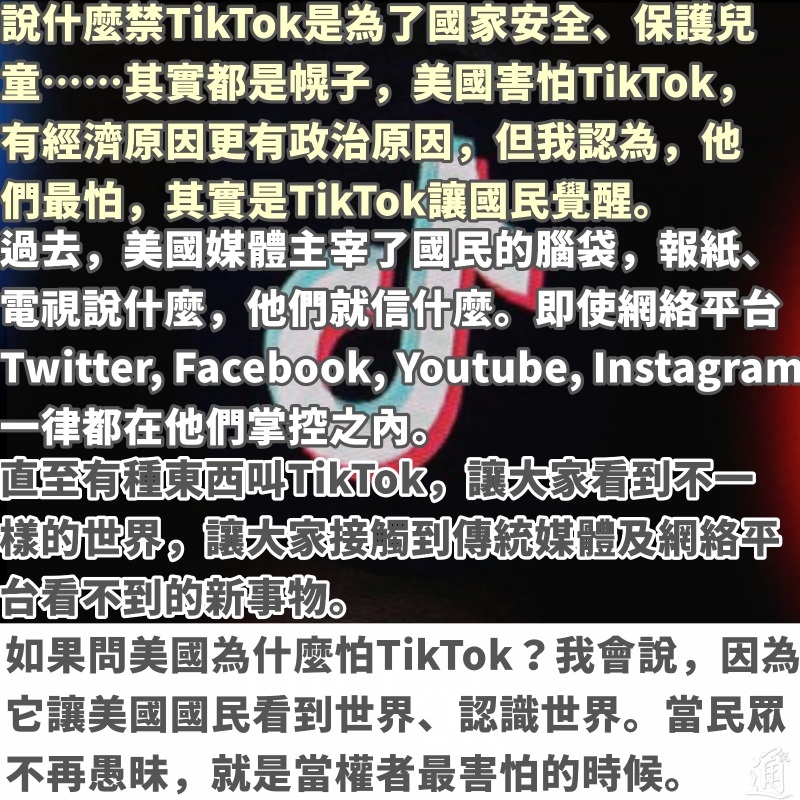 “美國為什麼怕TikTok?因為它讓美國國民看到世界、認識世界!”分享到: