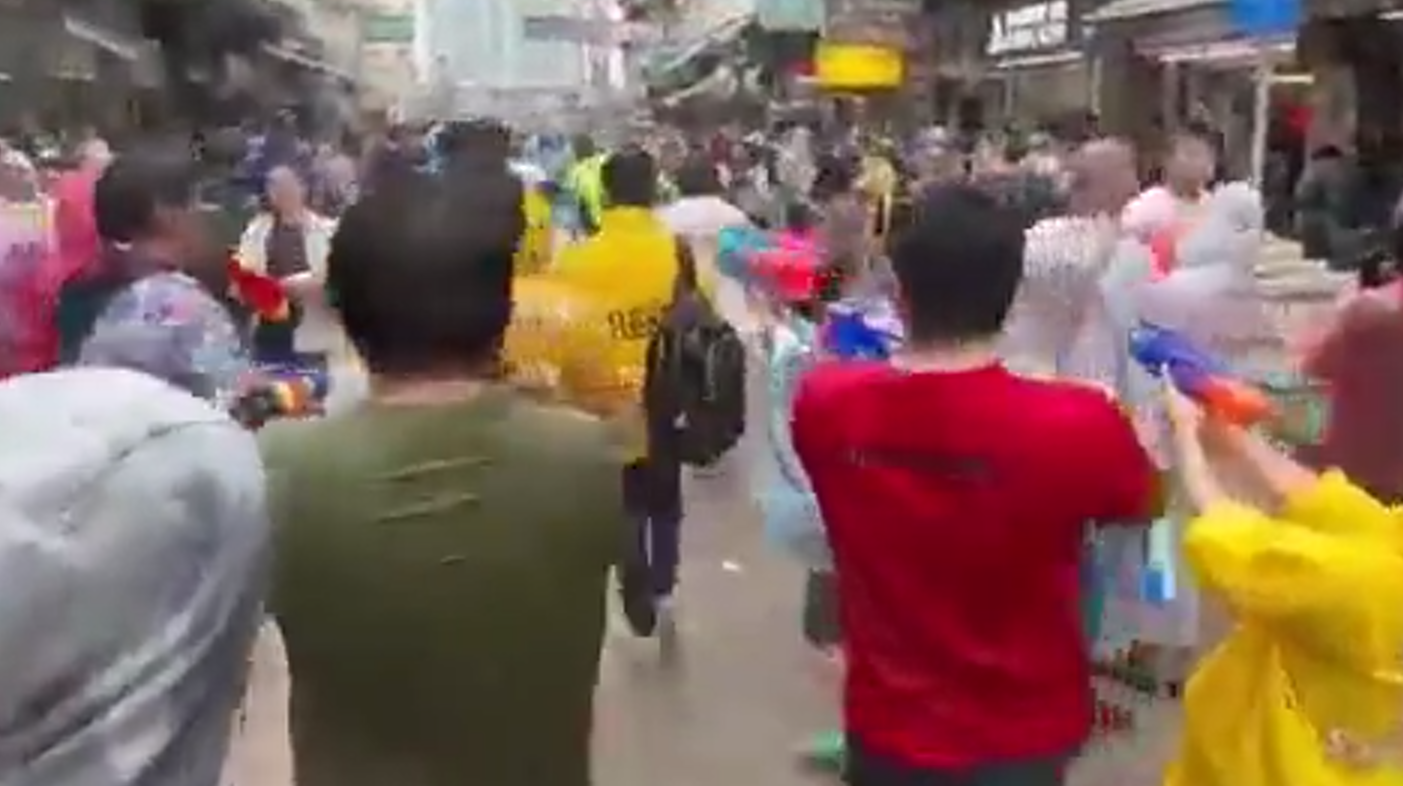香港新聞網4月12日電 香港停辦3年的“九龍城潑水節”於本月9日復辦,當日下午城南道舉行潑水節巡遊,大批市民帶同小朋友到場,大家手持水槍到處噴水,不亦樂乎。然而鏡頭背後,未有人發現原來有幾幕“黑暴”潑水版。 有網友日前在YouTube上載了一段視頻,可見潑水節當天一班名為“香港新秩序”的團夥,在九龍城潑水活動的現場向警察及TVB記者惡意狙擊。香港媒體人屈穎妍在社交平台發文指,影片所見幾個男人領着一群小孩,拿着大小水槍,追着執勤中維持秩序的警員,直接把水近距離射向他們的頭、臉、手、腳,而且是追着圍攻。她批評有關行為絕對是惡意。