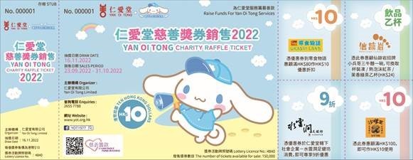 香港新聞網10月11日電 為持續拓展及優化服務質素,2022年度的“仁愛堂籌款月暨慈善獎券銷售”活動由即日起至10月31日舉行,今年仁愛堂更首度與Sanrio人氣角色Cinnamoroll (玉桂狗)合作,設計精美獎券及環保袋作慈善義賣,誠邀各界善長踴躍支持,共襄善舉!